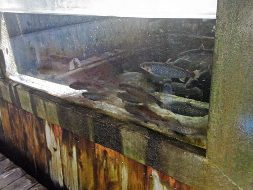 そして、浴槽の脇には水槽があって、付近に生息する川魚たちが泳いでました。