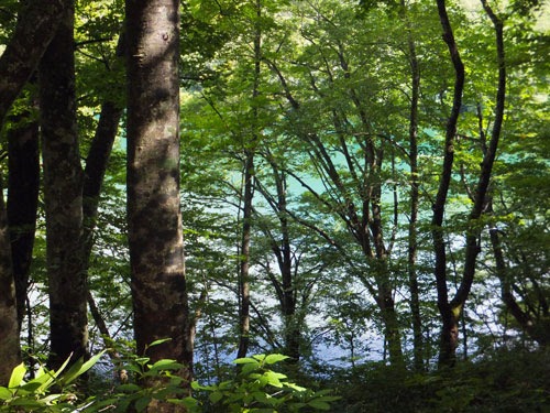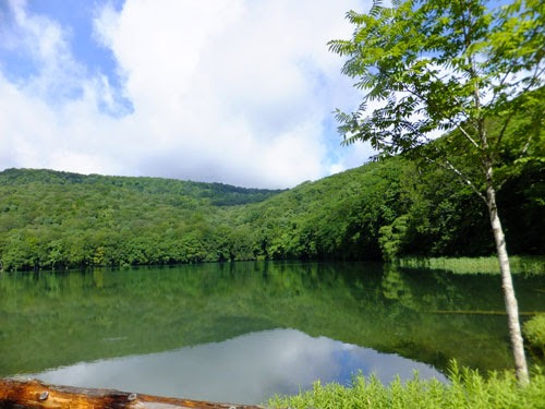 水深は浅く、水面に植物が顔を出していますが、周囲が深い森に囲まれていて静かで神秘的。