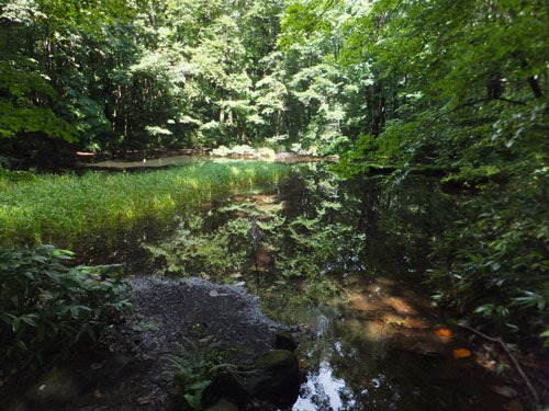 ここはもう沼というより今の時期湿地のように見えましたが、今では天然記念物に指定されている「モリアオガエル」の産卵地にもなってるとか。