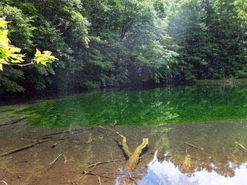 と言っても他と違って「沼」ではなく「泉」らしいです。非常に浅くて藻が茂っているのがよく見えます。