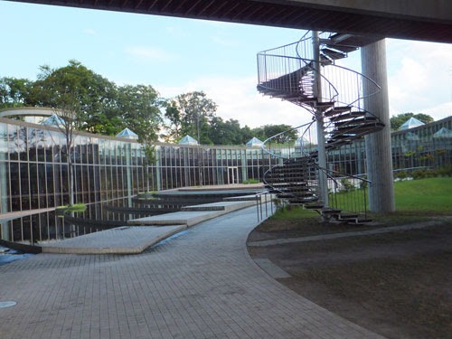 中庭を取り巻くように、ぐるりとガラス張りの円形になって建物があります。