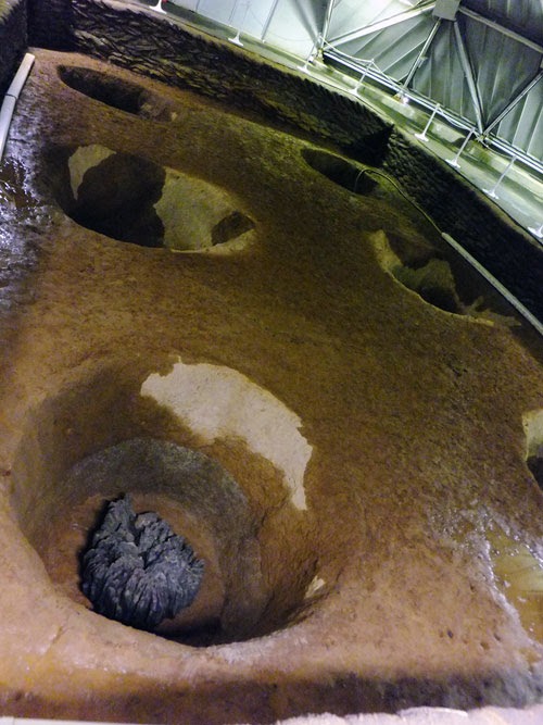実際の発掘跡はシェルターの中で大事に保存されていて、そのすぐ横に復元されています。