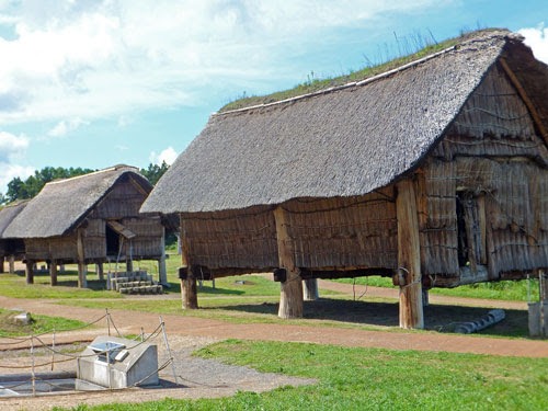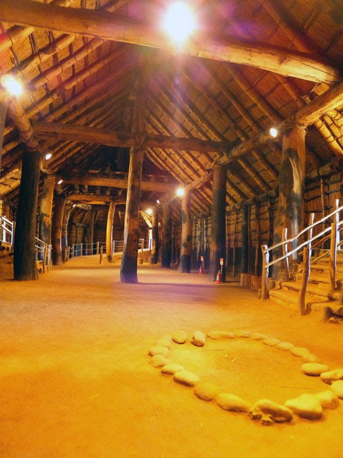 背後に大きな農家のような建物がみえますが、これも竪穴式住居!?