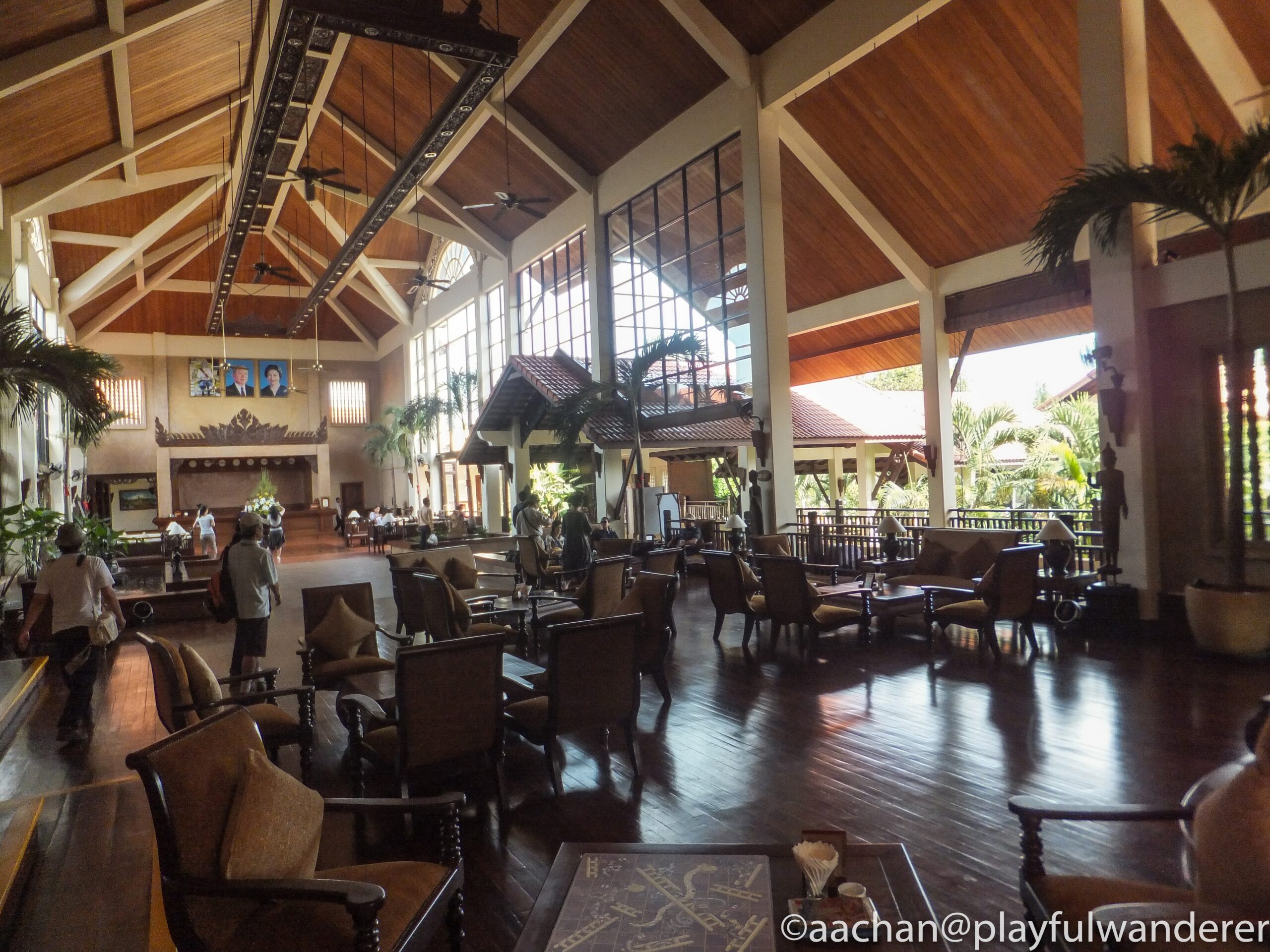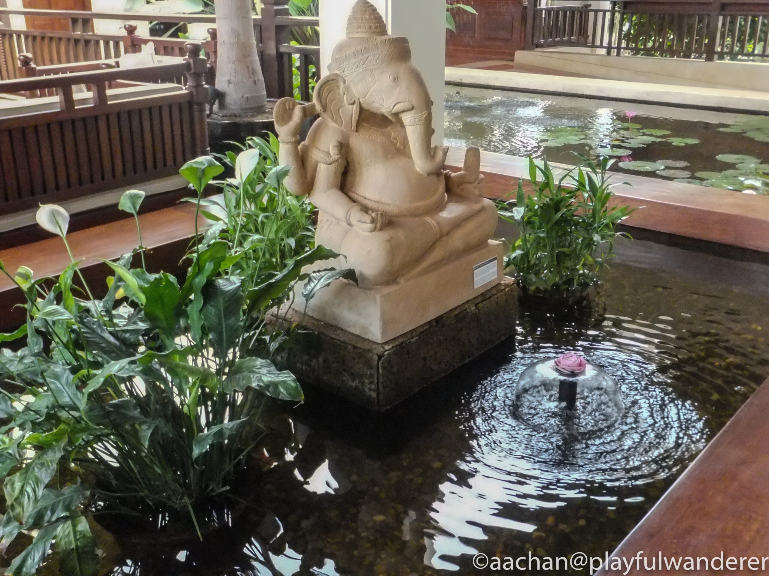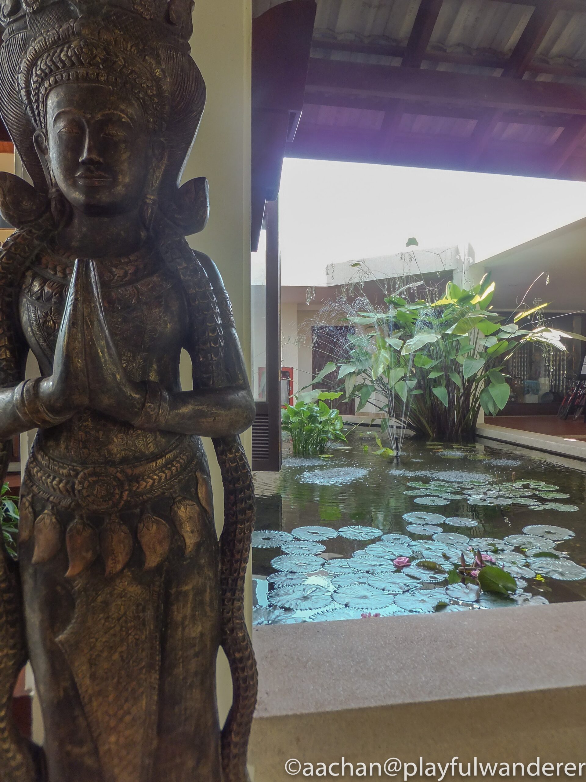 ロビーには池があったり、お姉さんが民族楽器の生演奏を行なっていたりします。