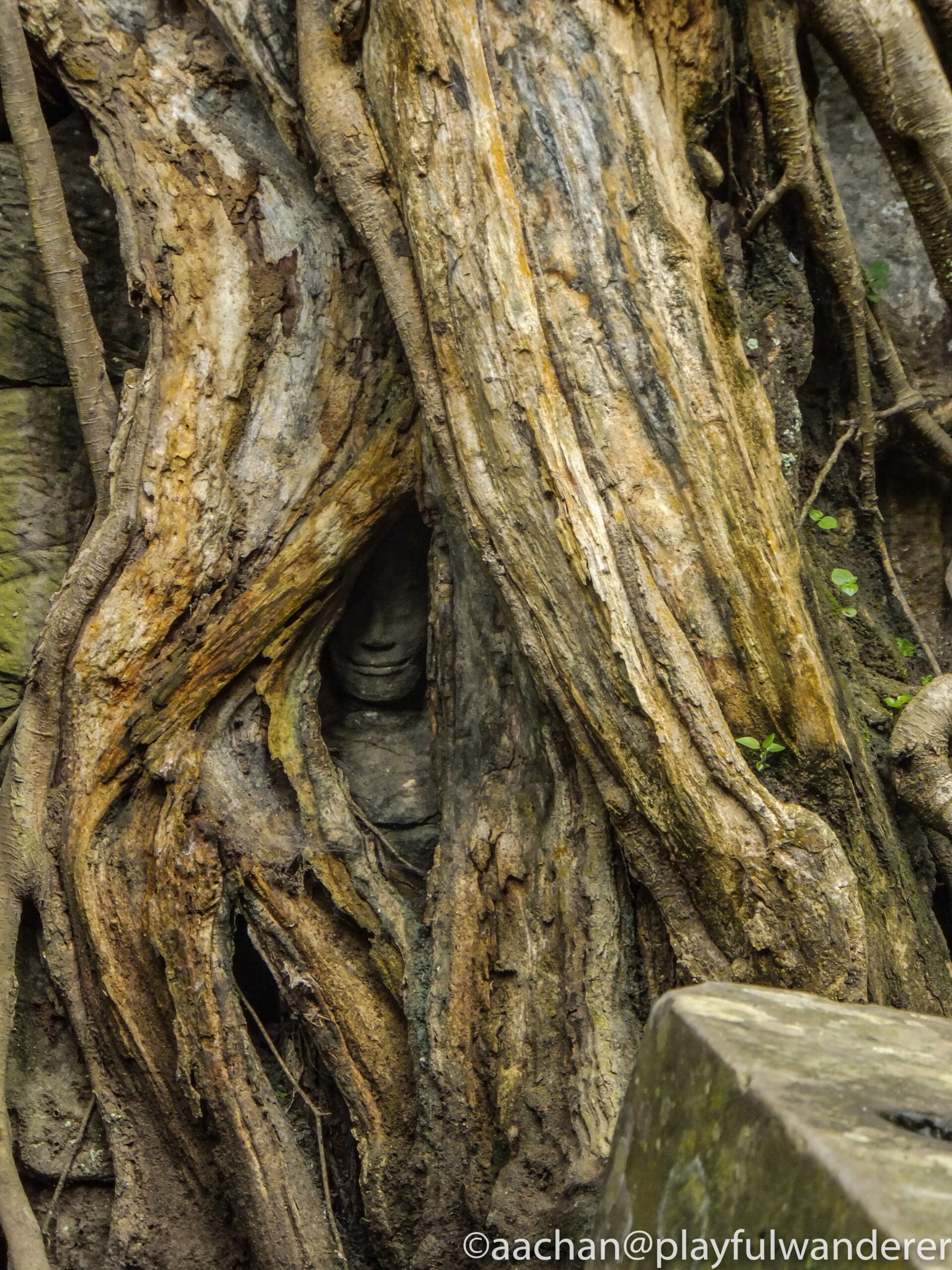 言われなければ絶対気づかなかったであろう、根っこの隙間から顔をのぞかせている仏像がっ!