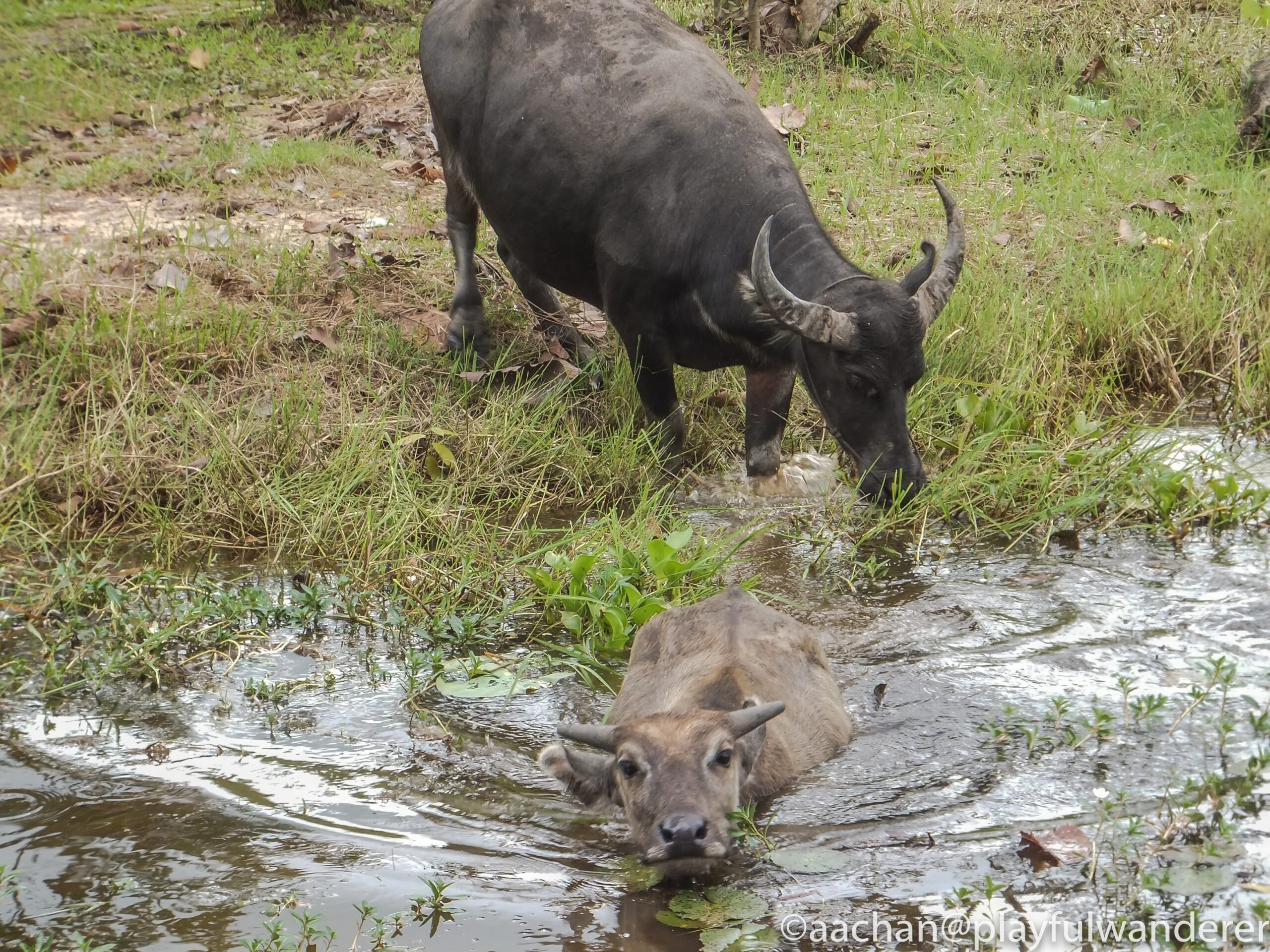 向こう側からみんな泳いで渡ってきたのだが、すぐに追い払われてました。もしや、、野良水牛なのかっ!?(笑)
