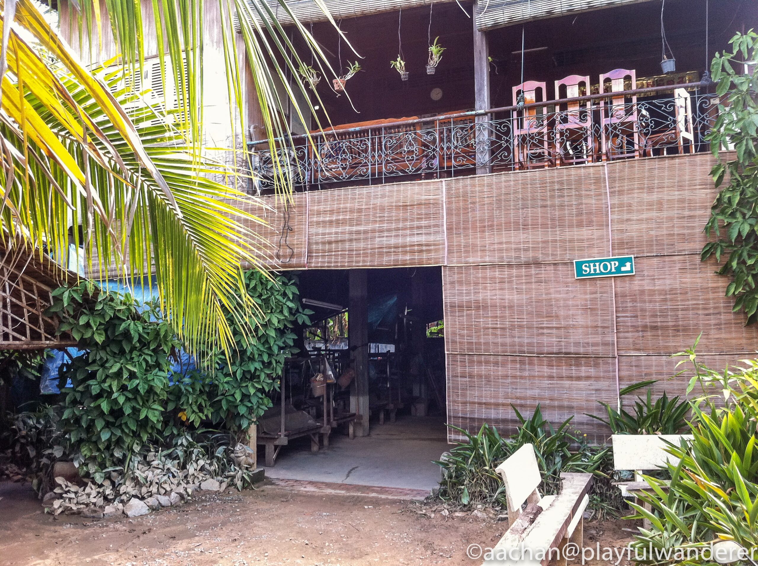 その前に定番らしく、強制的に工芸品の工房見学と、クメール伝統織物研究所というところに立ち寄ったのですが、織物の方は雨季の浸水で工房自体が休業となっており、どちらもみやげものコーナーはそれなりに値が張ったので、見学だけ(^^;)