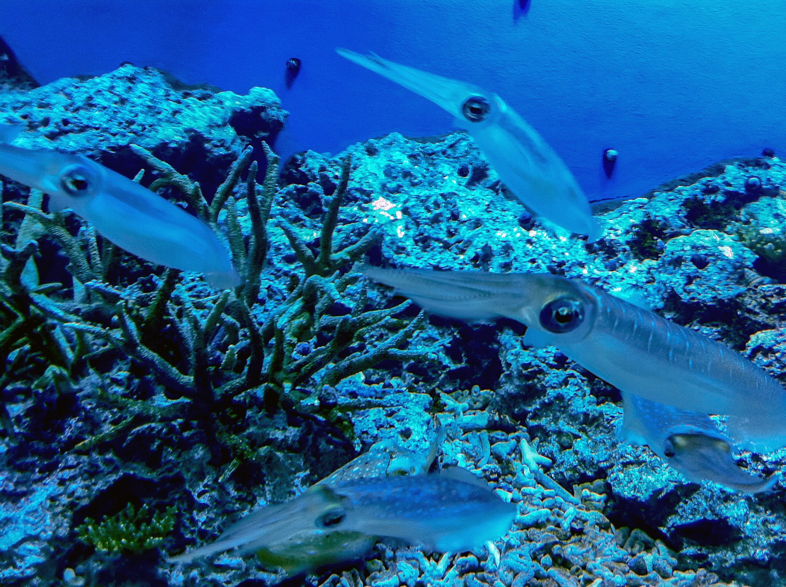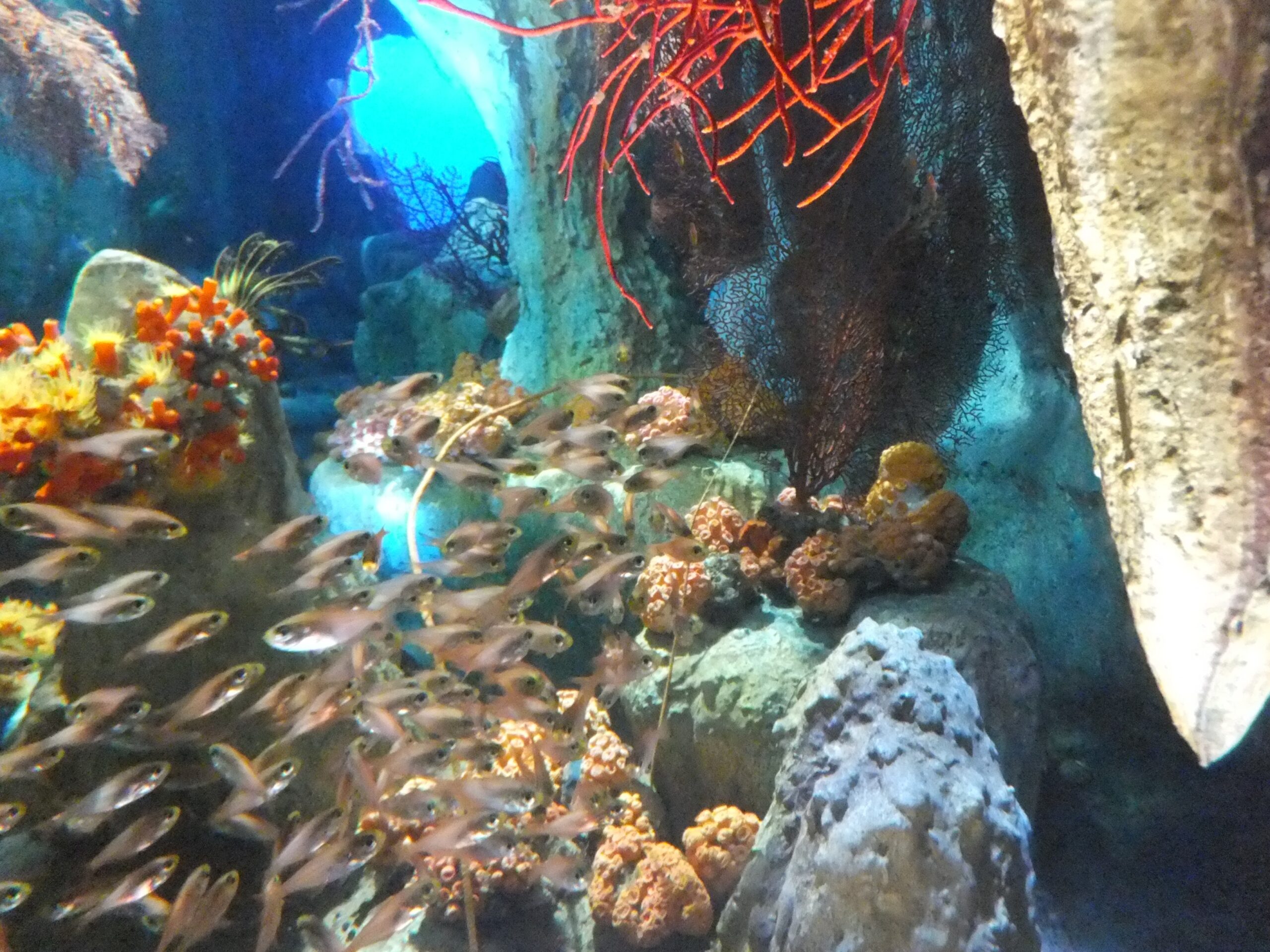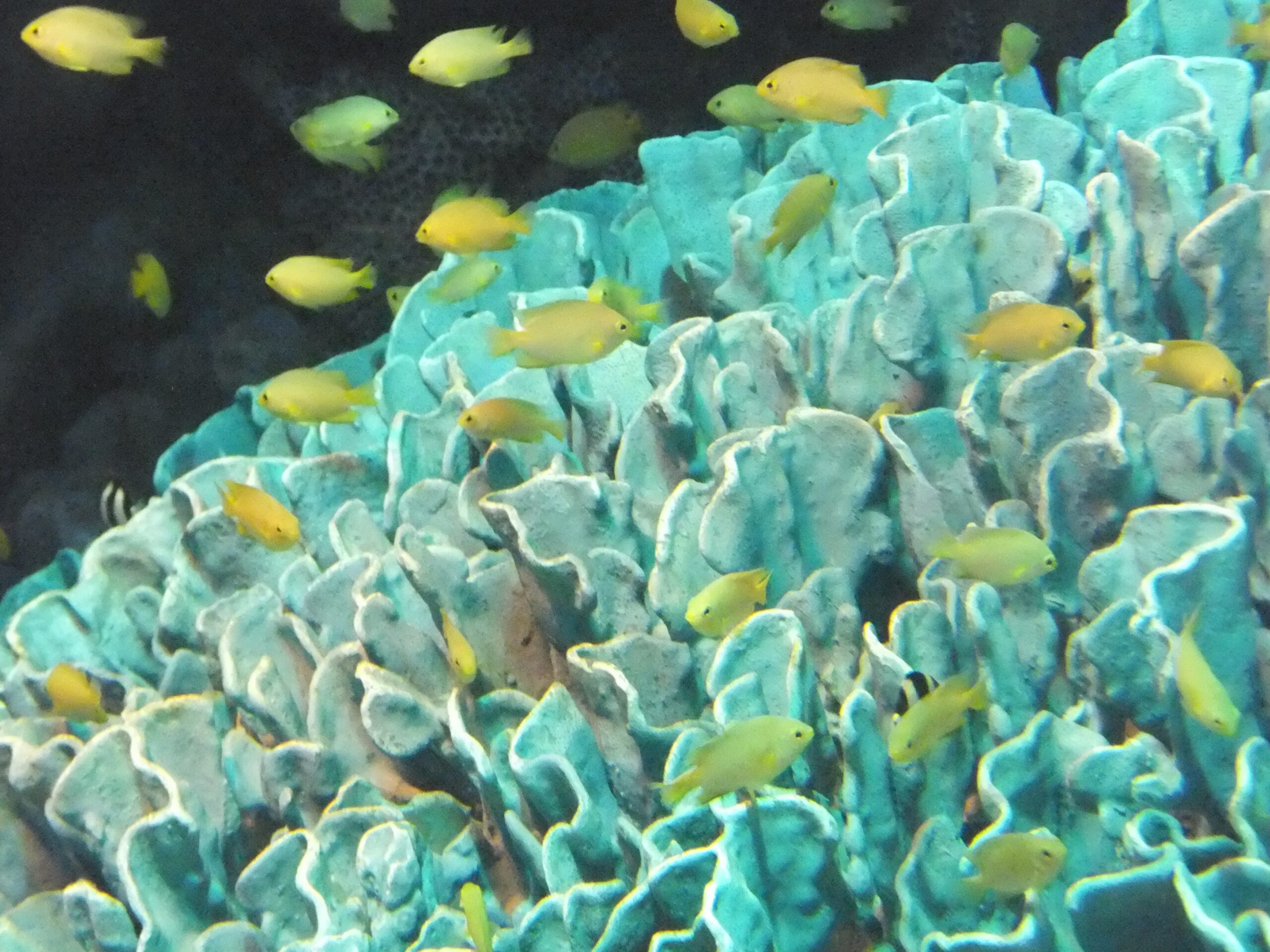 またサンゴ礁地帯の海水魚水槽にもどって、沖縄、カリブ海、グレートバリアリーフなど。