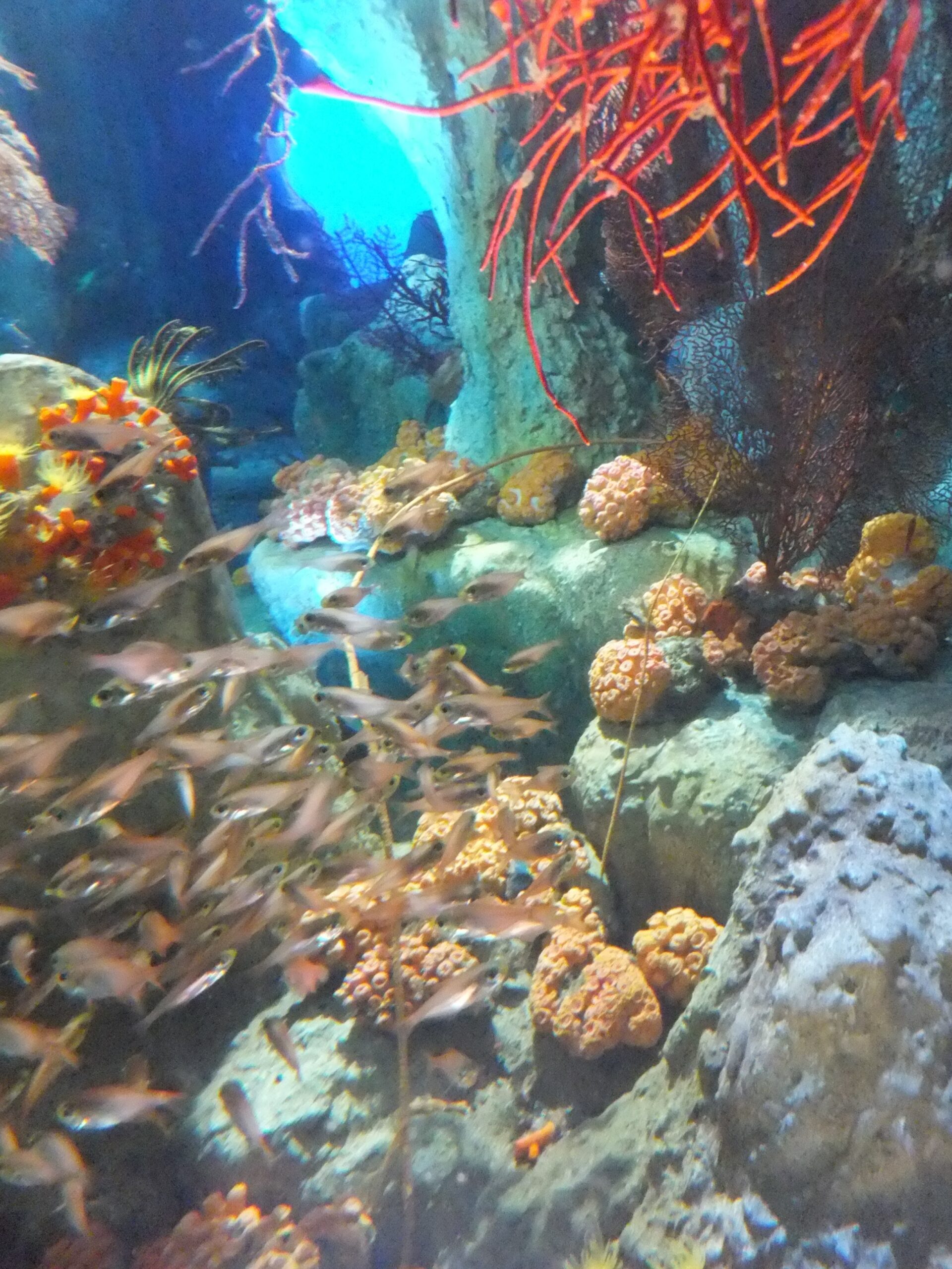 とりあえず人の波に飲まれながら入場して、まず「サンゴ礁の海」という大きめの水槽が目に入る。