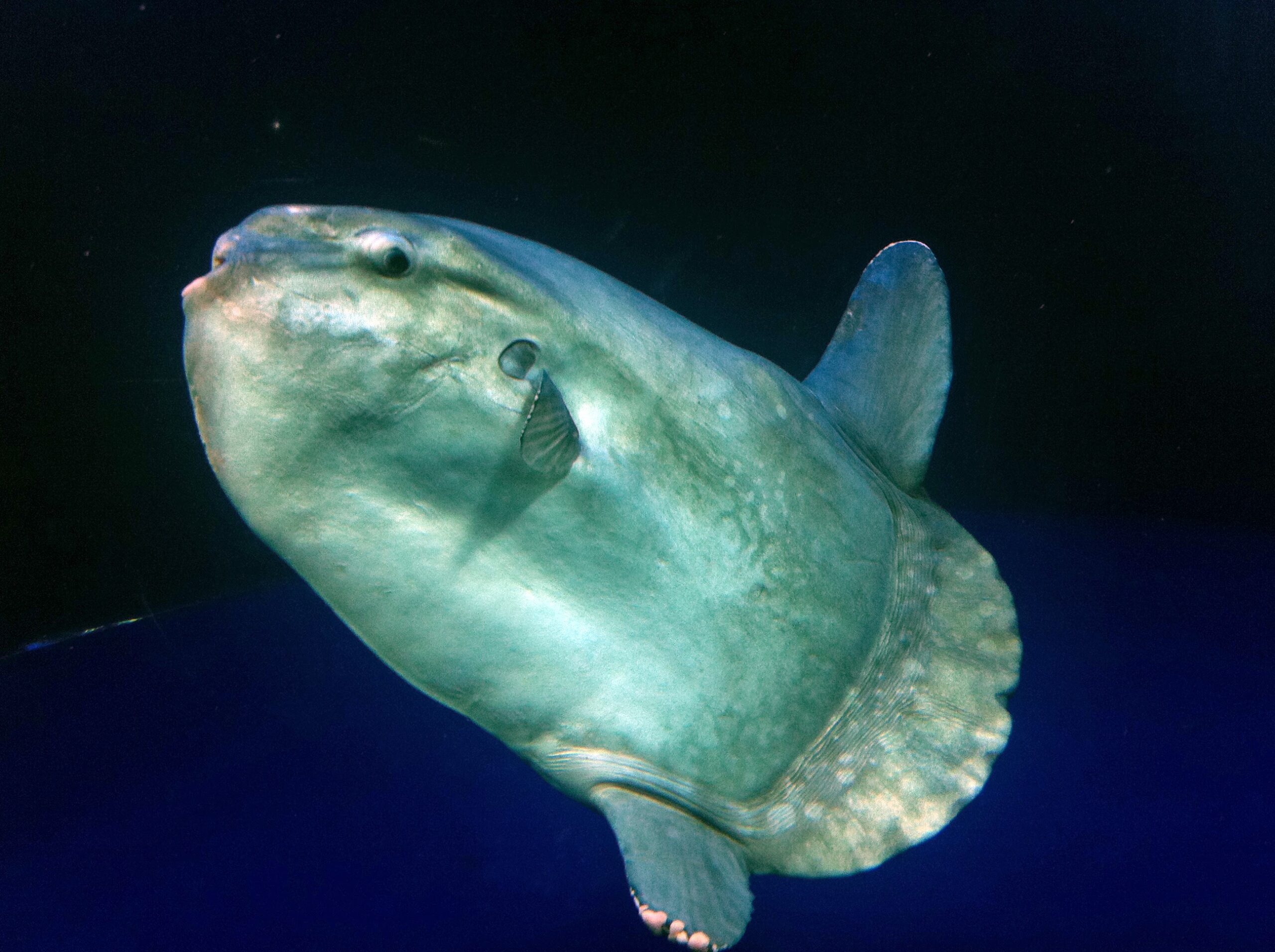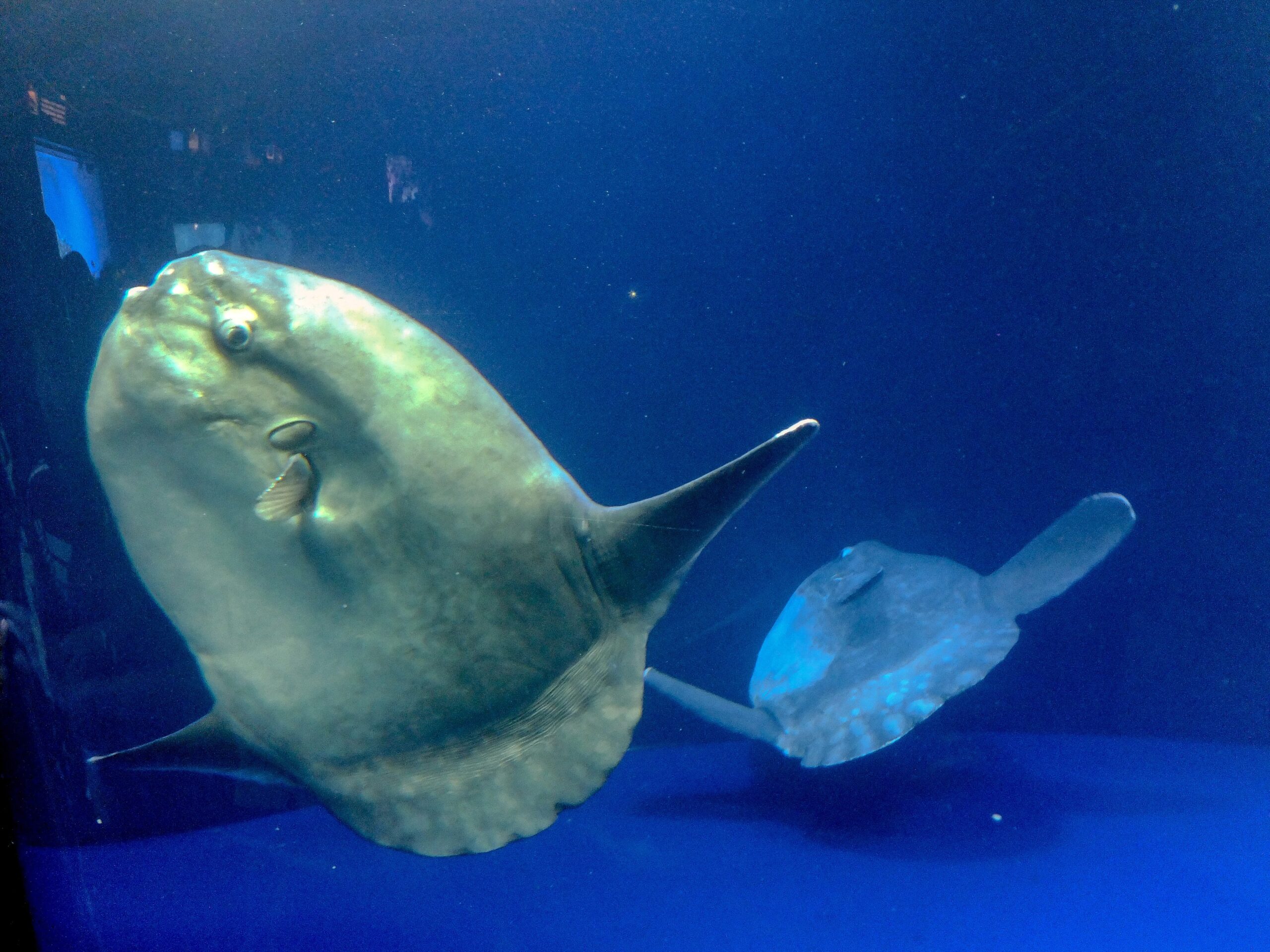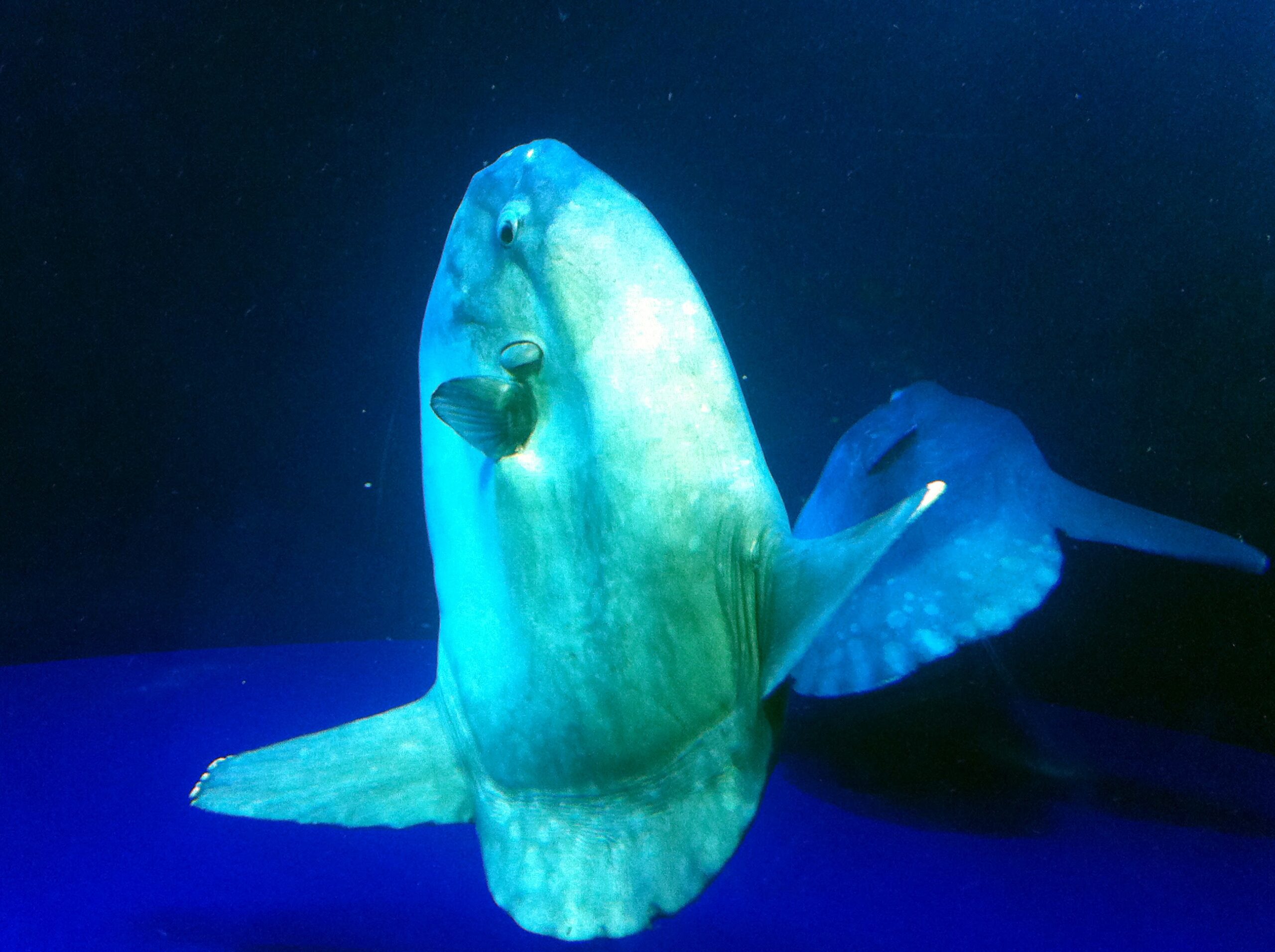 その奥は「マンボウとの出会い」水槽。ここも2匹いました。マンボウってデリケートで飼育が難しいんだよねえ。