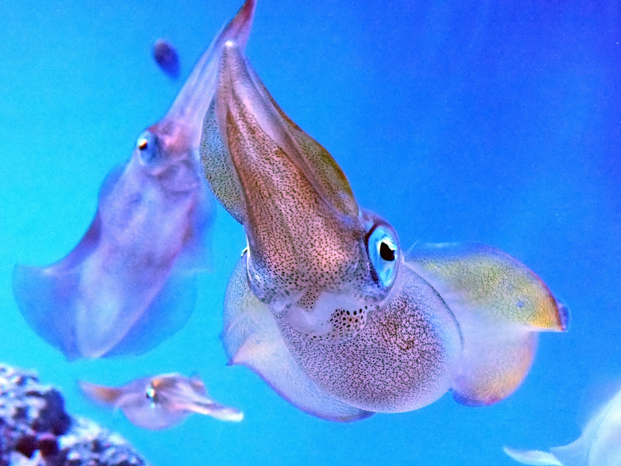 おとなりは「海の忍者」コーナー。泳ぐイカの姿もとってもかわいい。