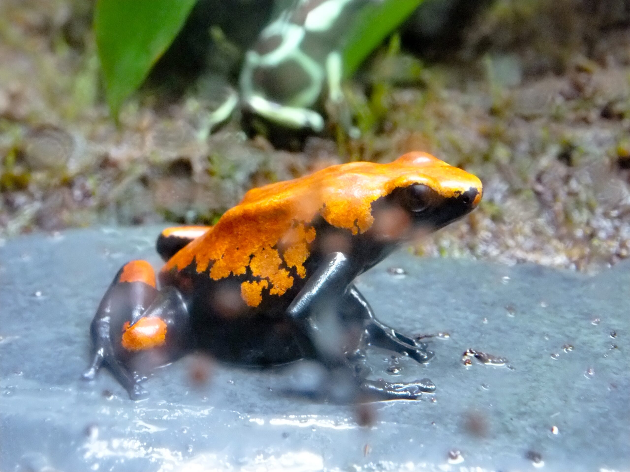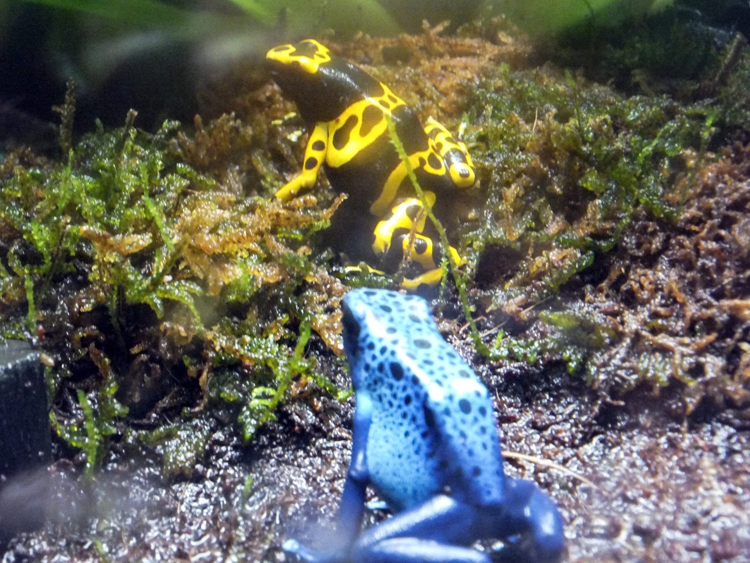 その先に両生類などのコーナーが広がっている。ここで目についたのが毒々しいがいろとりどりのカエルたち。