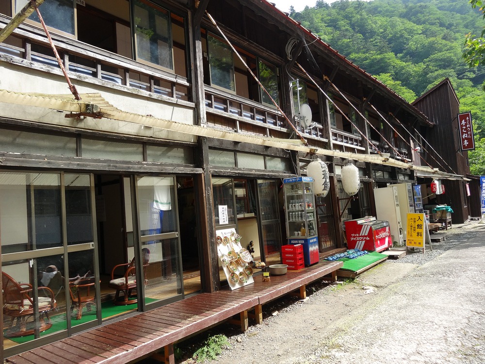 夏油温泉入口の駐車場に車を止めたら、宿が立ち並ぶ通りを一番奥まで進むと見えてくる、鄙びた木造の建物が昭和館。