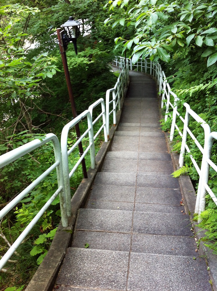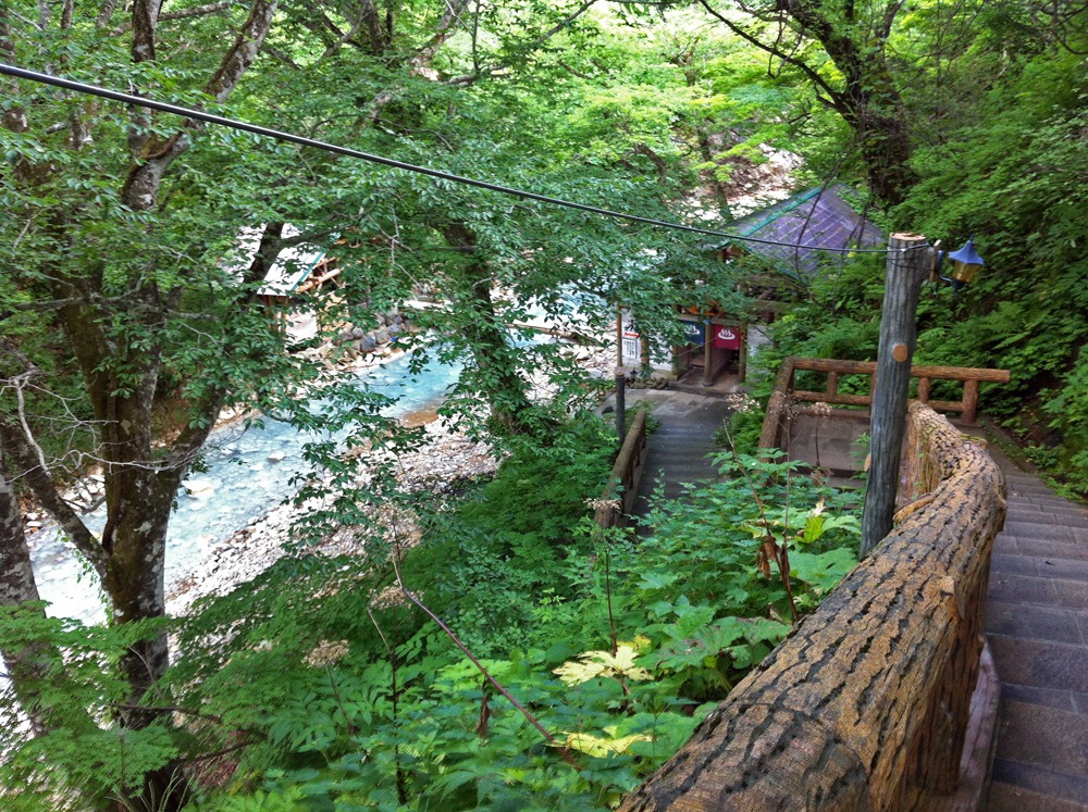 瑞々しい緑が鮮やかで、真横を流れる渓流が涼しげですが、実際は暑い。。。