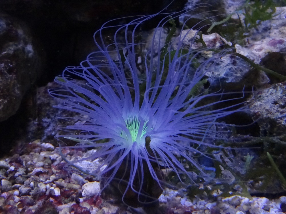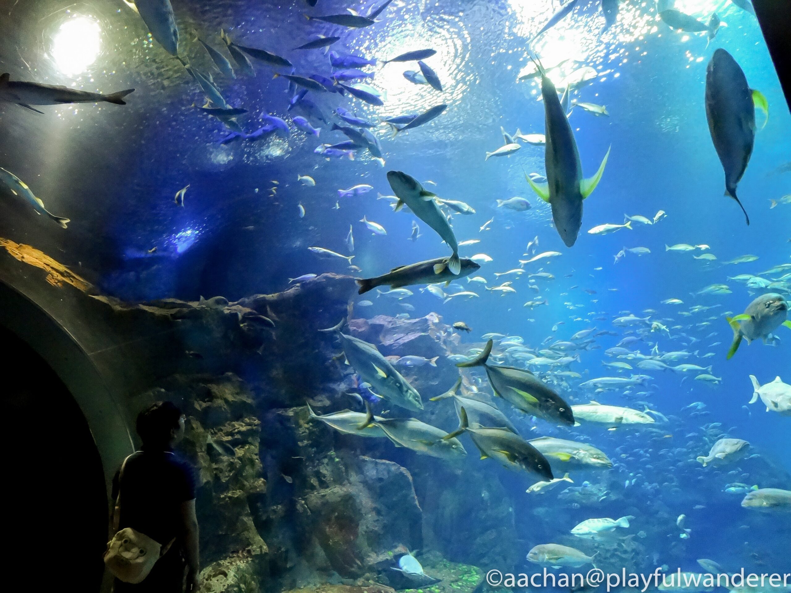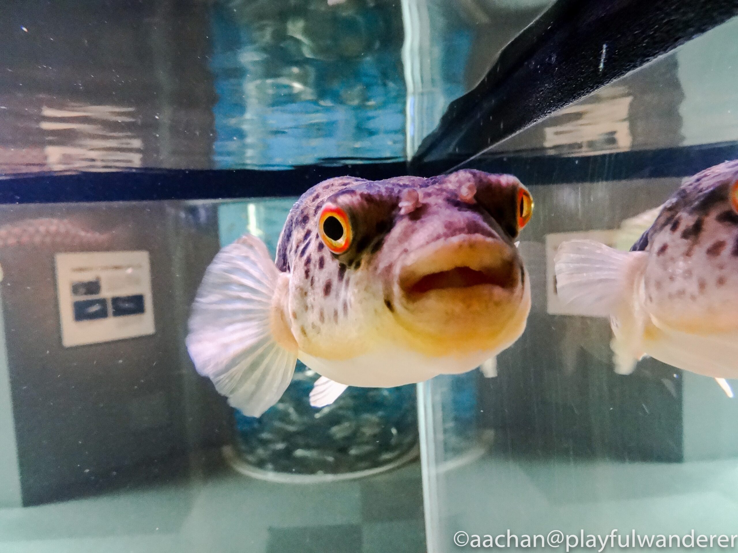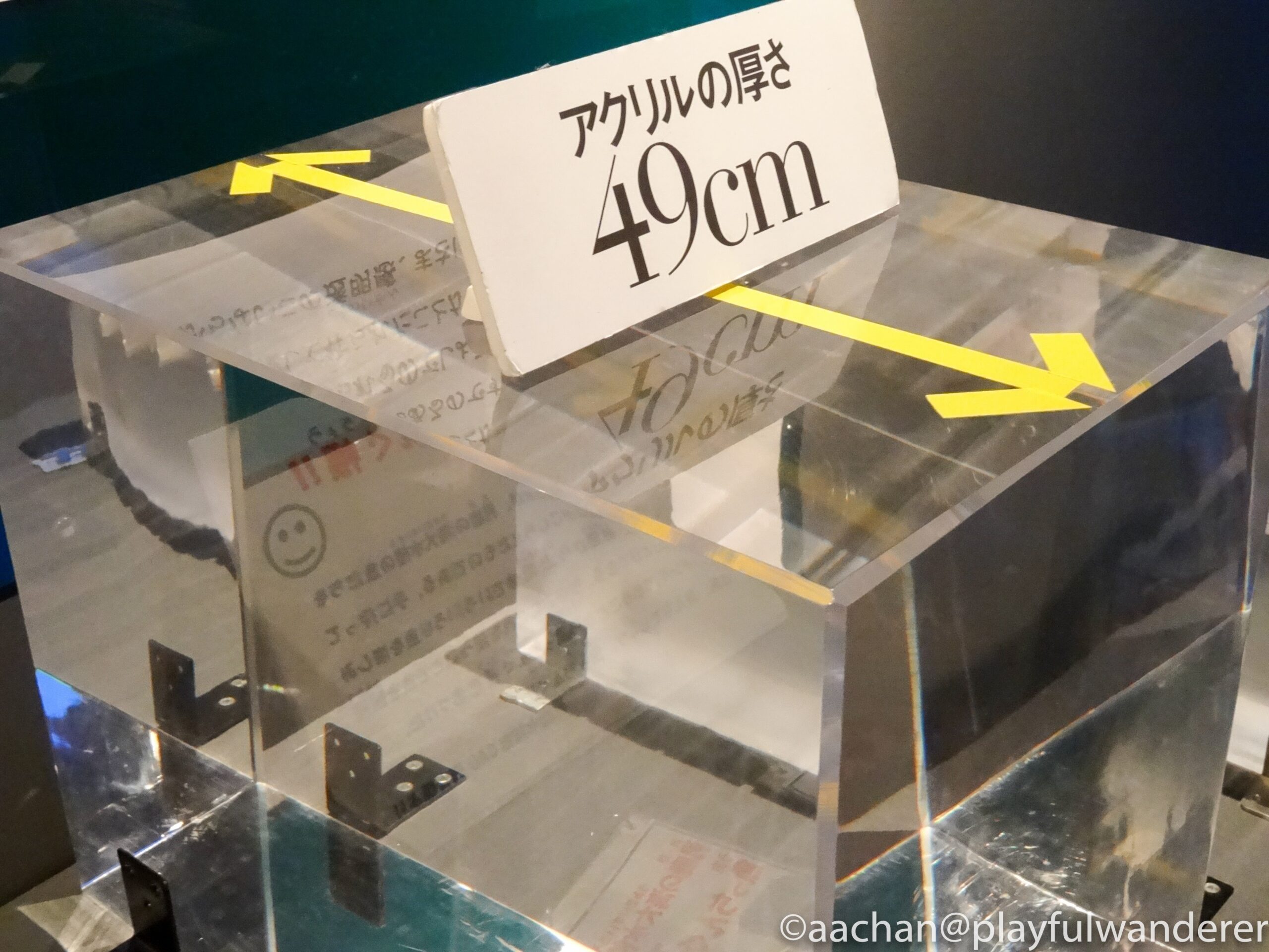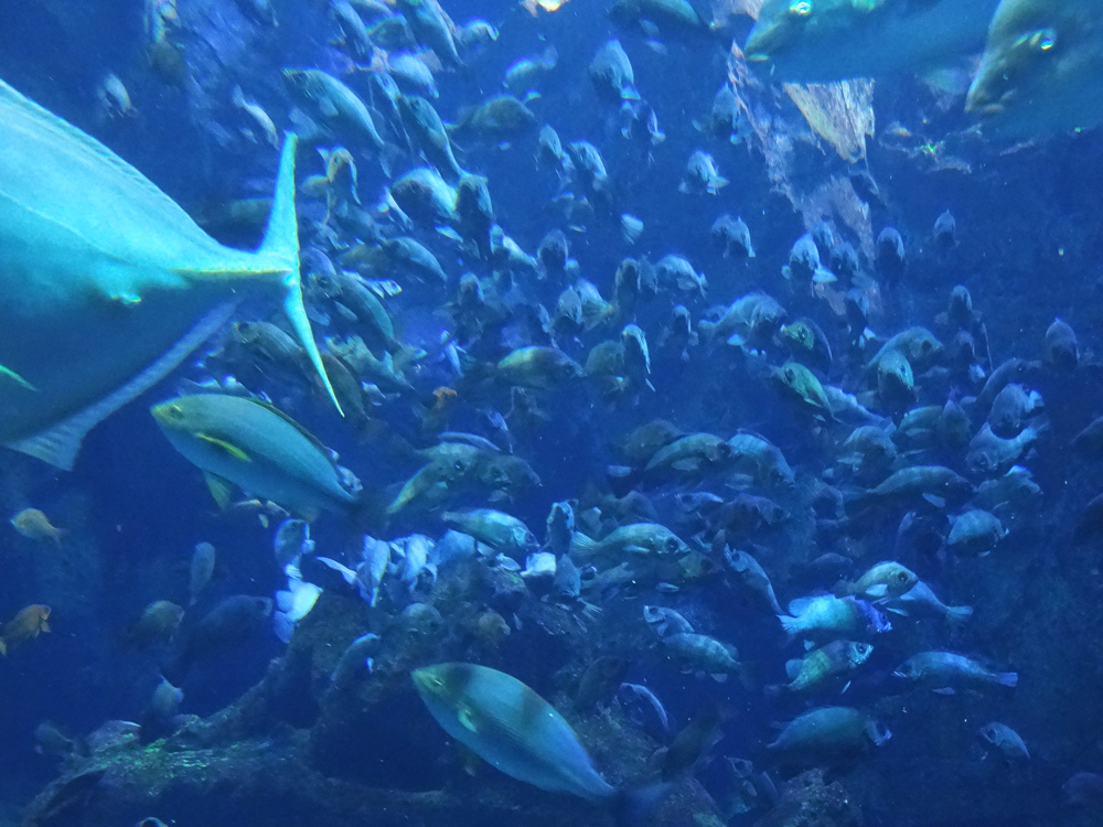 クリアに見える水槽ですが、これだけの水量を支えているのは分厚いアクリル。アクリル水槽って、軽いけれど傷がつきやすいという印象があるのですが、ピカピカですなぁ。