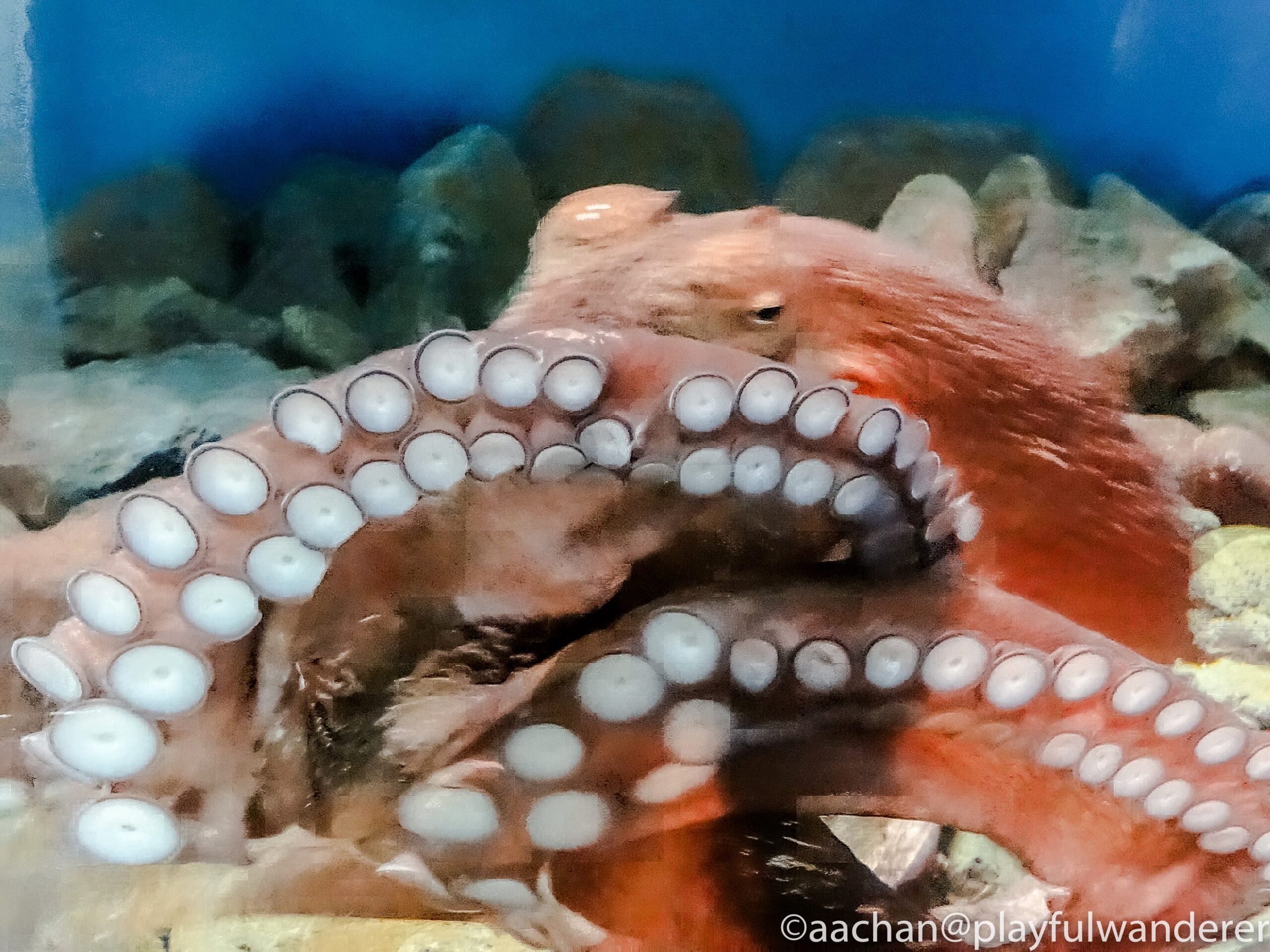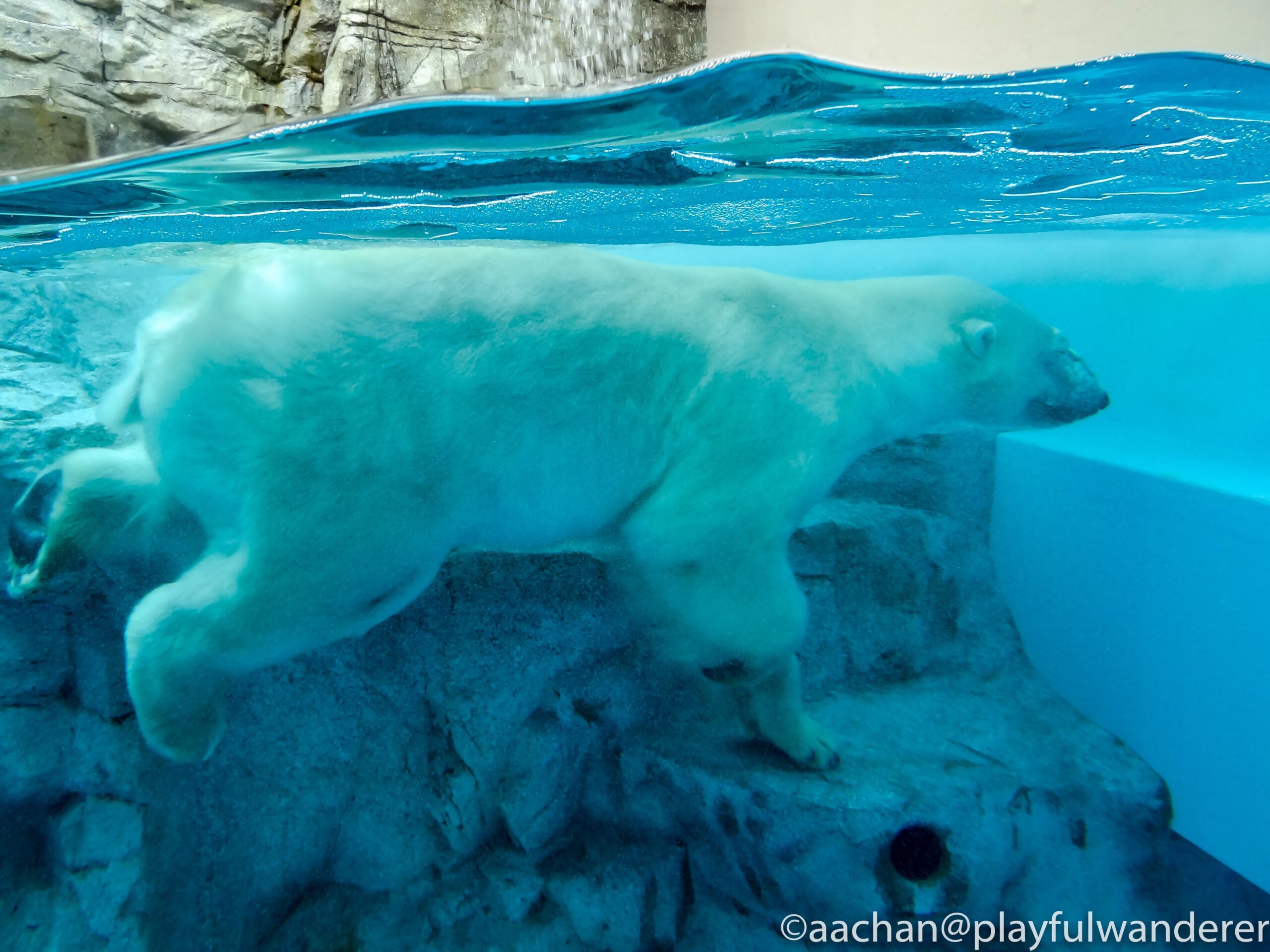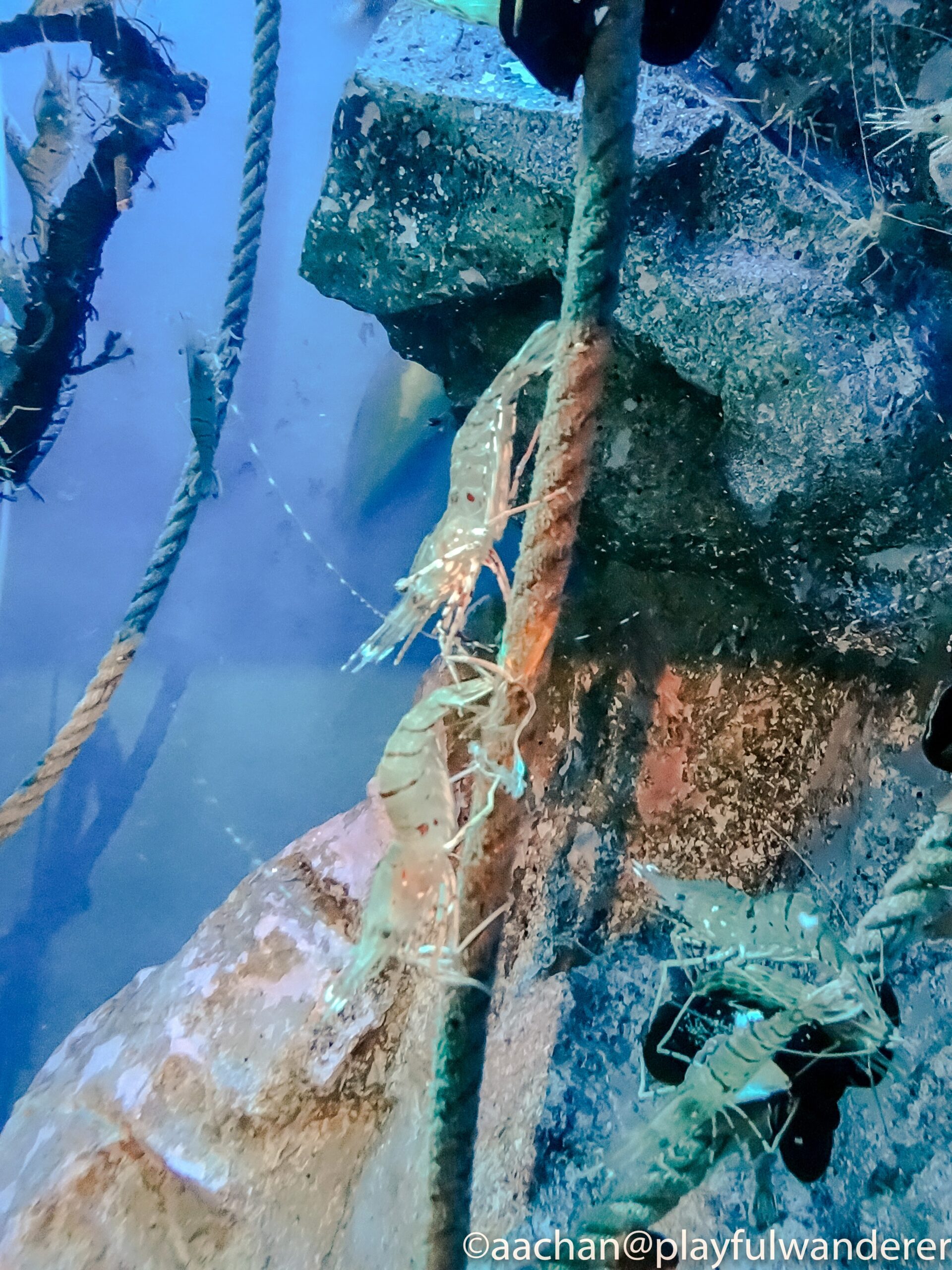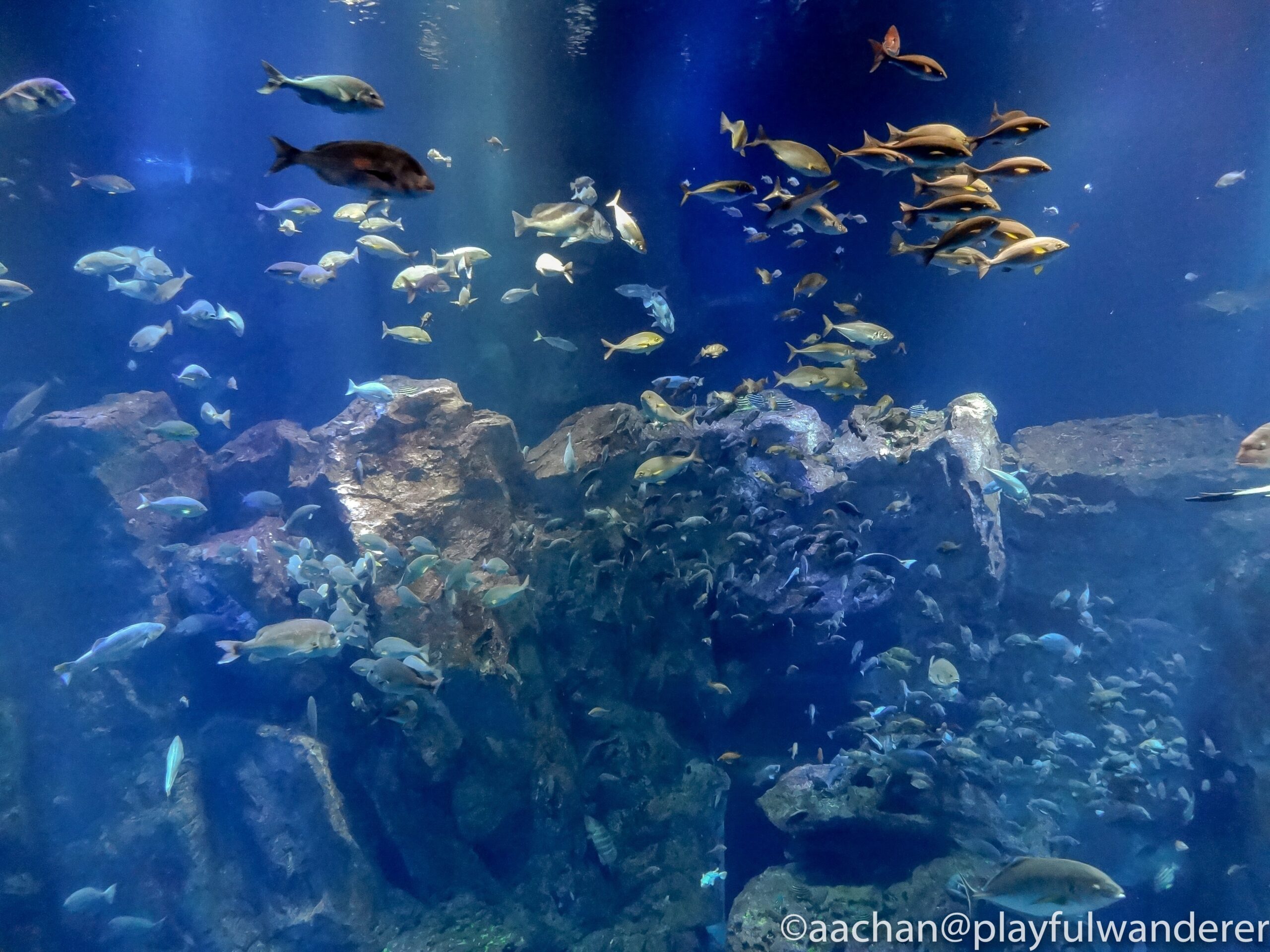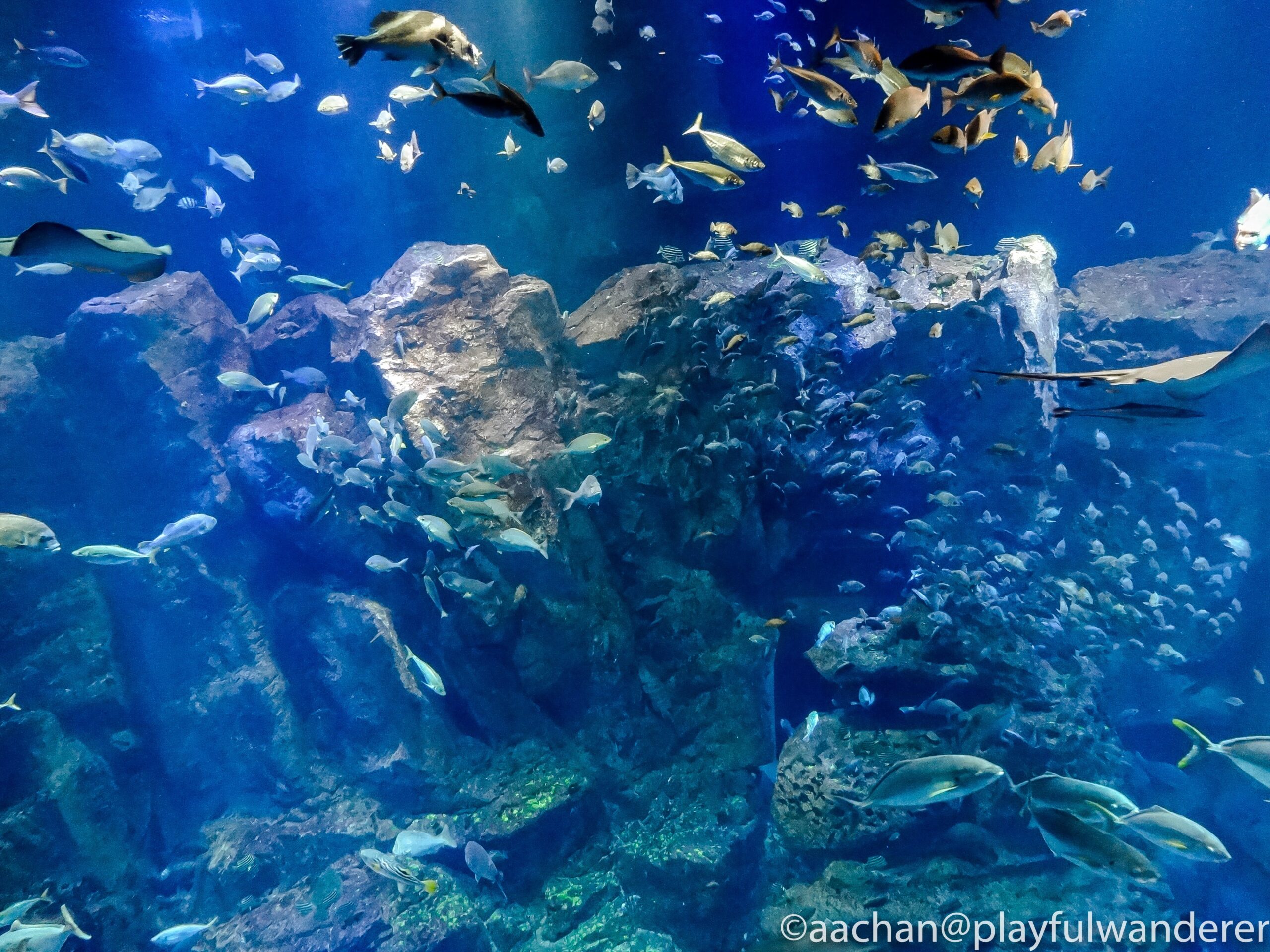 クリアに見える水槽ですが、これだけの水量を支えているのは分厚いアクリル。アクリル水槽って、軽いけれど傷がつきやすいという印象があるのですが、ピカピカですなぁ。