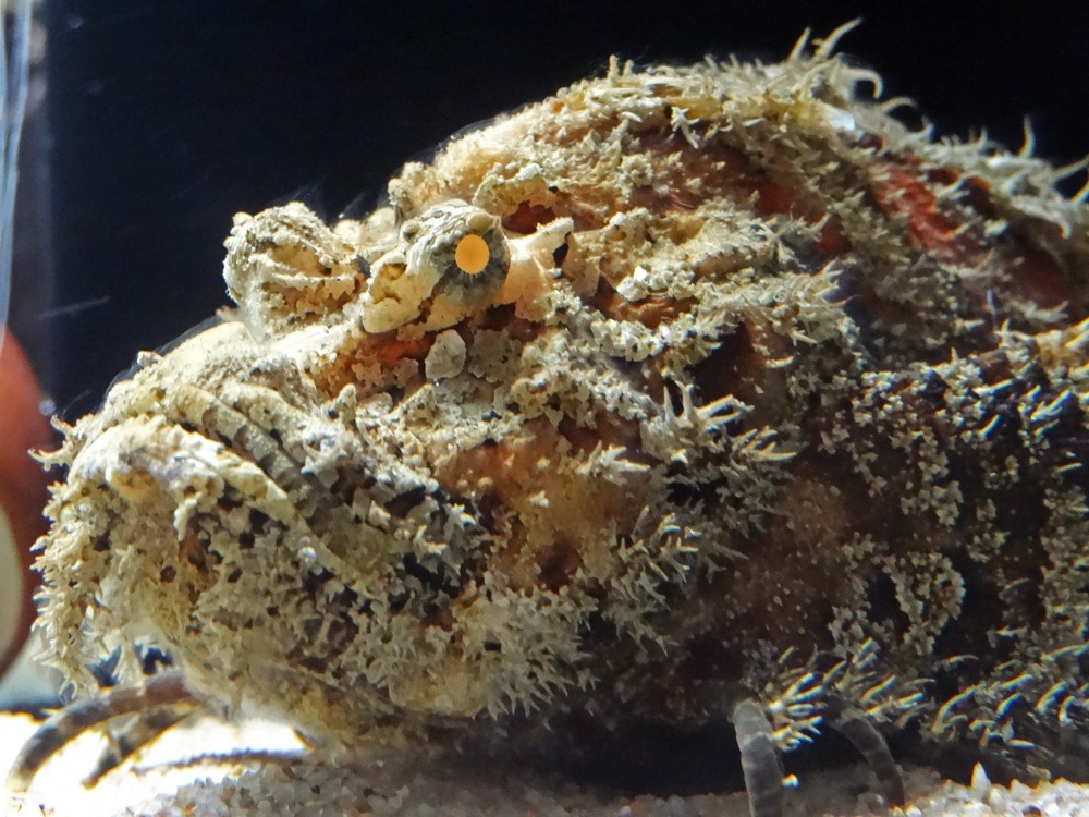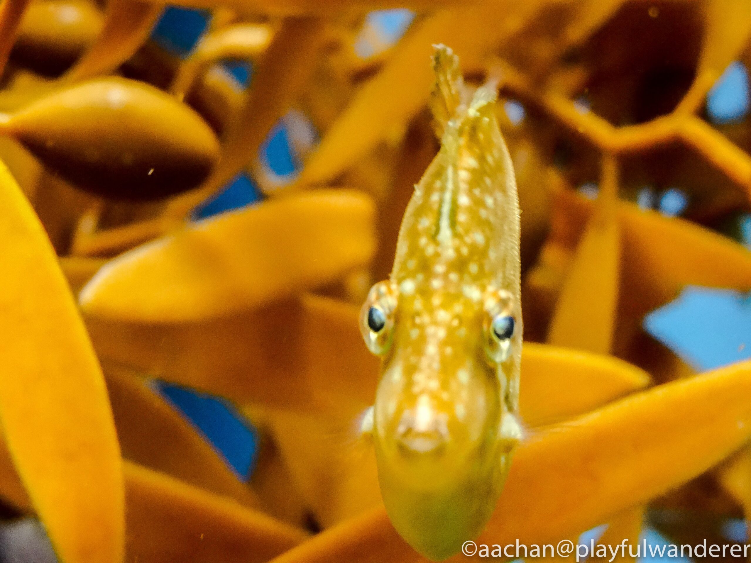 海藻の色に似ているアミメハギ。ひらべった〜〜い。