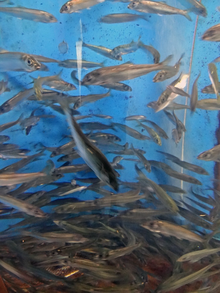 カタクチイワシたちは、水族館近くの浅瀬で、網で直接採集したらしい(笑