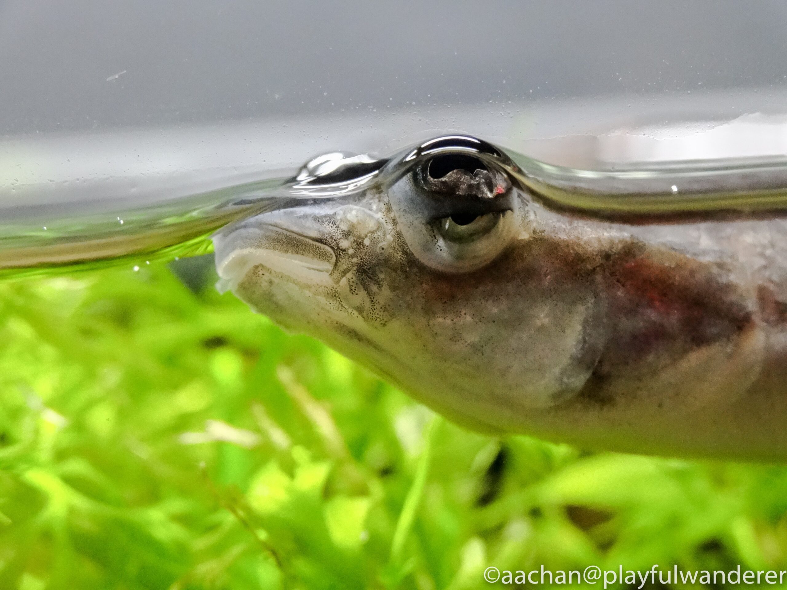 ヨツメウオは水中と陸上を同時に見れるように目玉が分かれてるんだ。どういう風にみえてるんだろ?