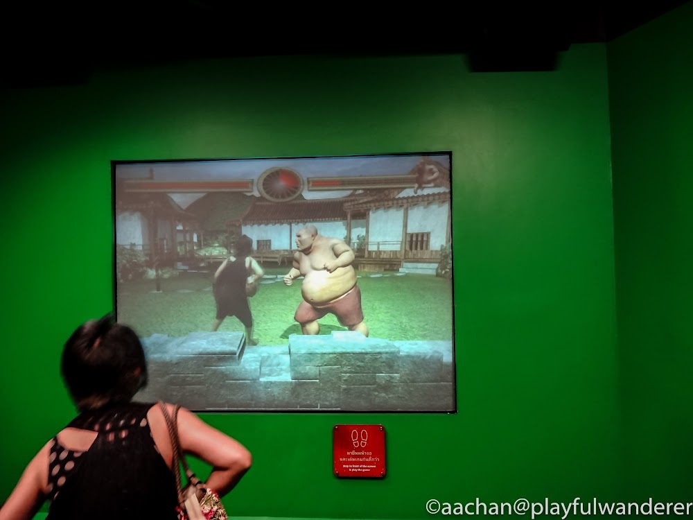 しかも、あちこちにゲームもあり、遊べる!こちらは定位置にたつと自分がそのままゲームキャラとなり、キックやパンチがリアルに反映される格闘ゲーム。(ついはまって無駄に息切れ。。。。)