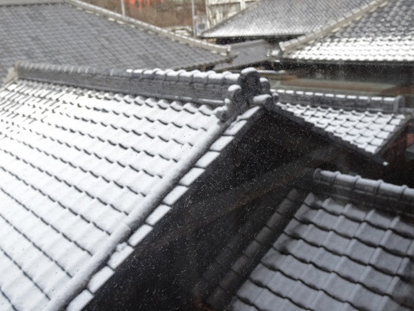 2Fの窓から建物を見下ろすと複雑に連なる屋根が。全部ひとつの家なんだよなあ。