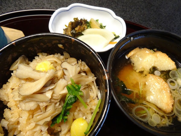 舞茸ごはんが出る頃にはもうお腹いっぱい。。みそ汁に入ってるのは仙台油麩かな。火を通しすぎると固く縮まっちゃうのでなかなか扱いが難しいw