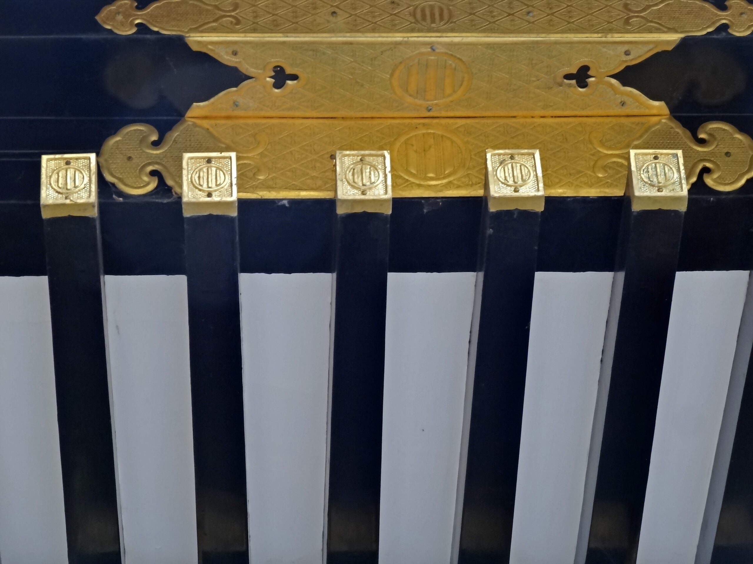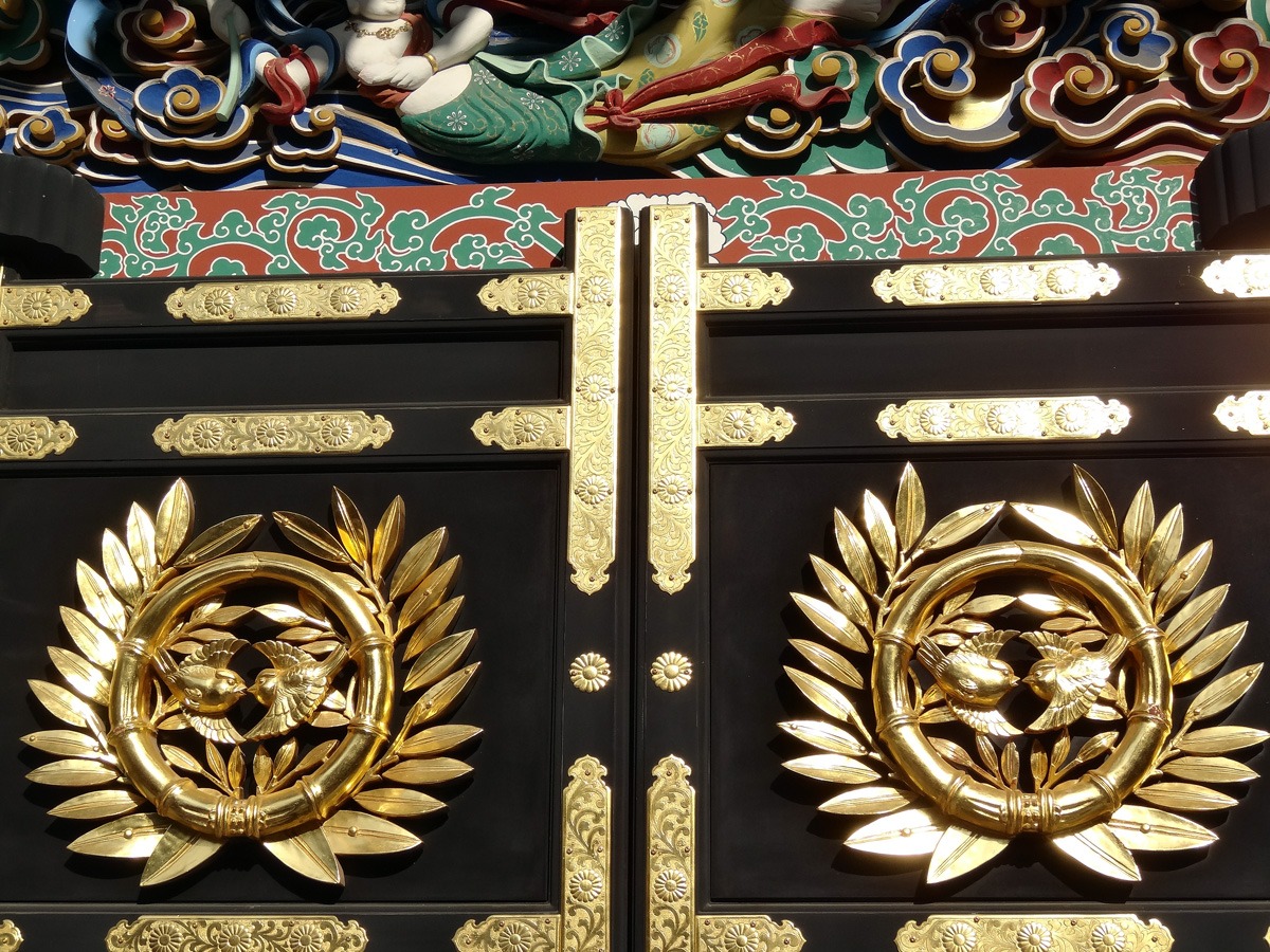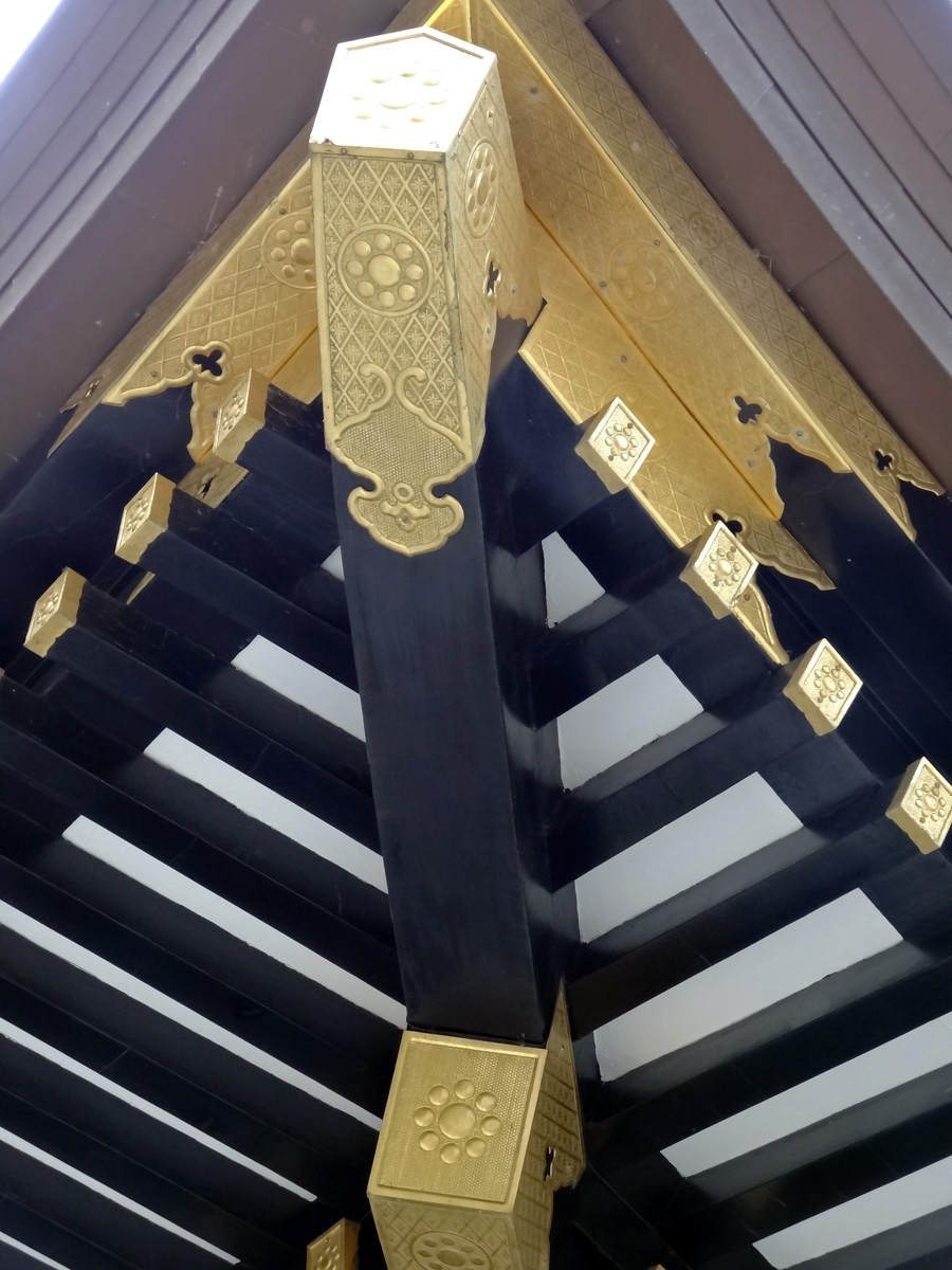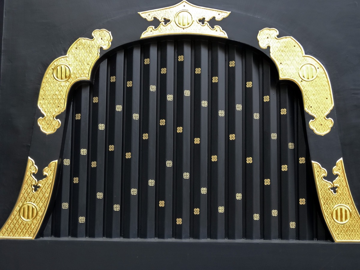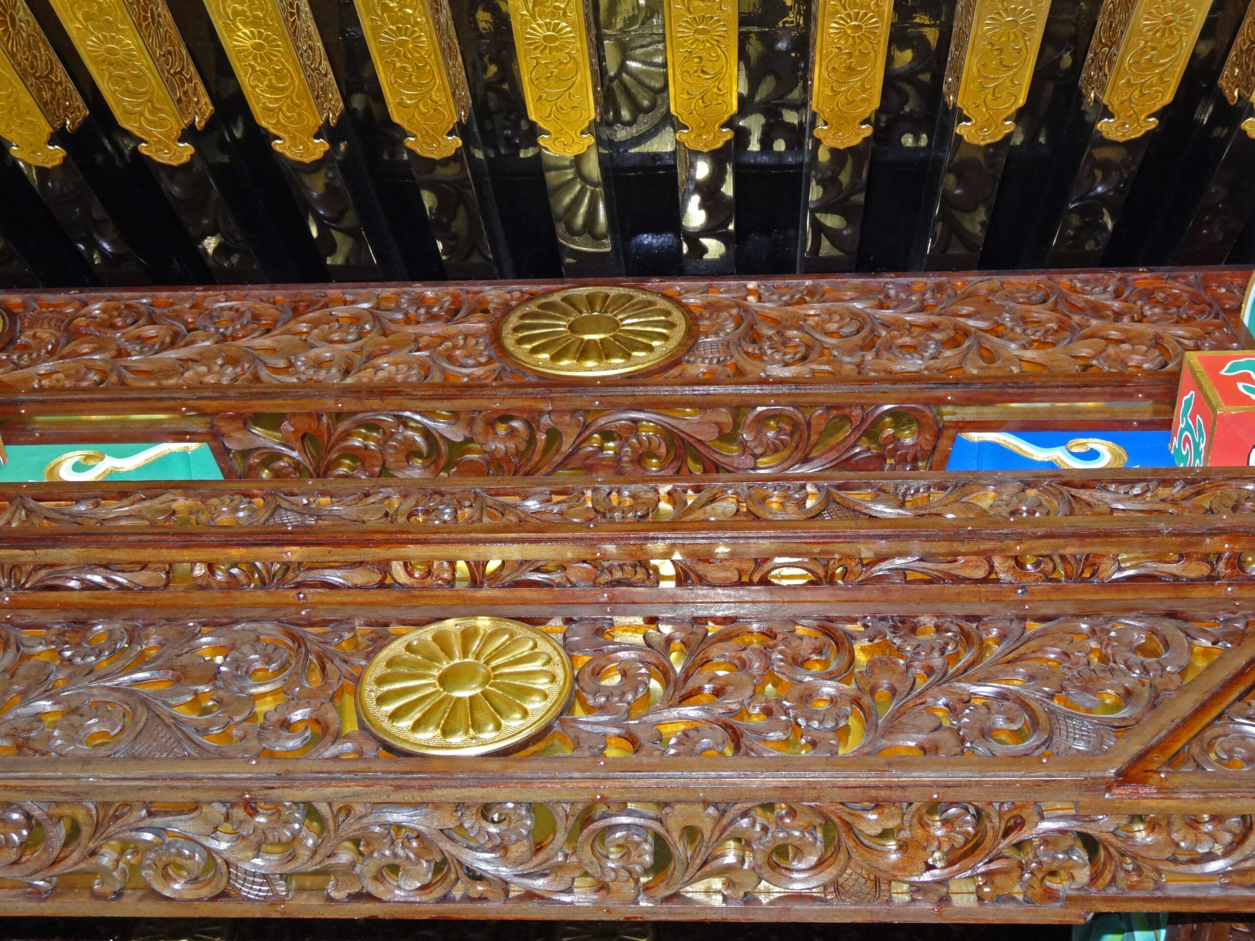 まず、「瑞鳳殿」の窓部分。枠も桟も菊文様がちりばめられてますね。