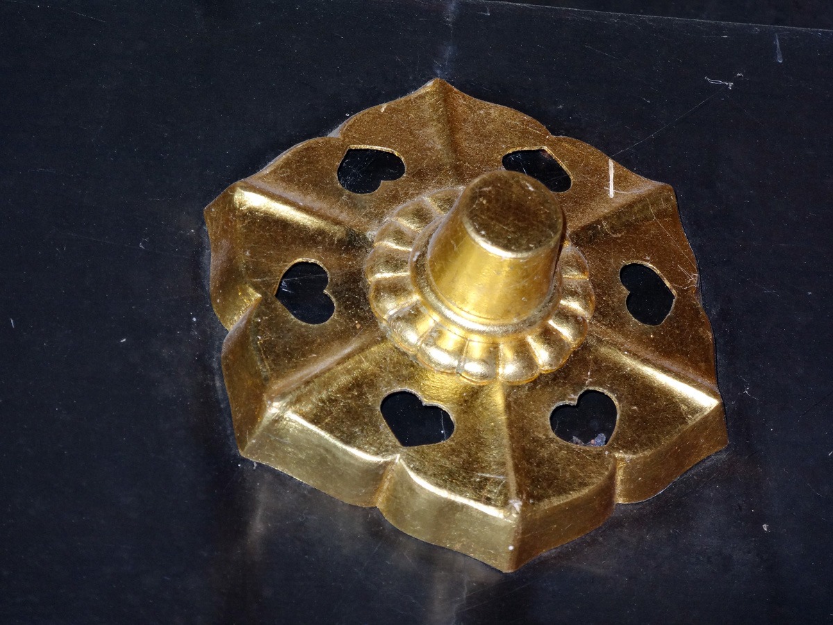 釘隠しかな? 鍾景閣は三つ引両と九曜紋が入ってましたが、ここはハート??そんな紋あったっけ。。