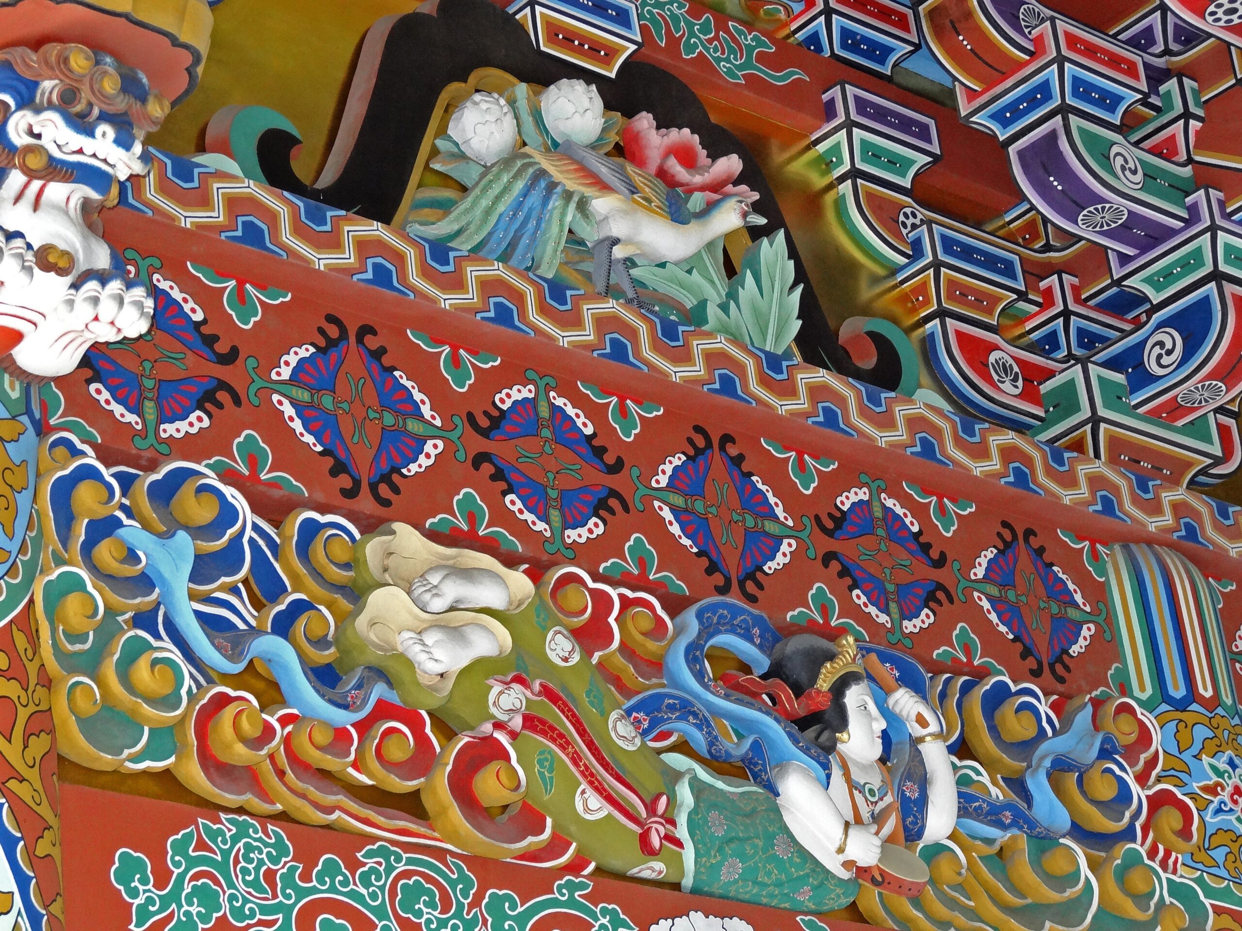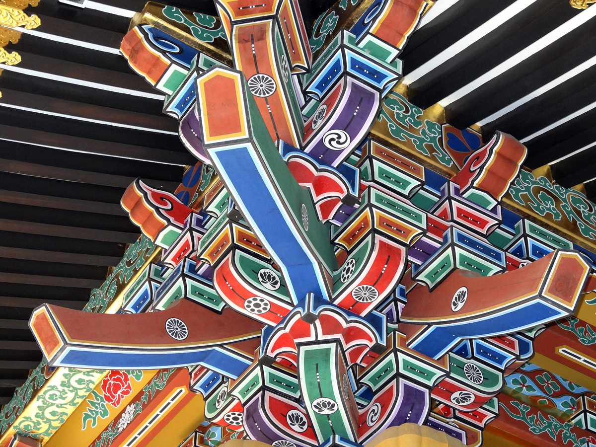 極彩色ですが、非常に複雑にくみ上げられた斗栱(?)伊達家はたくさんの種類の家紋がありますが、いろいろな紋が入り交じってますね。