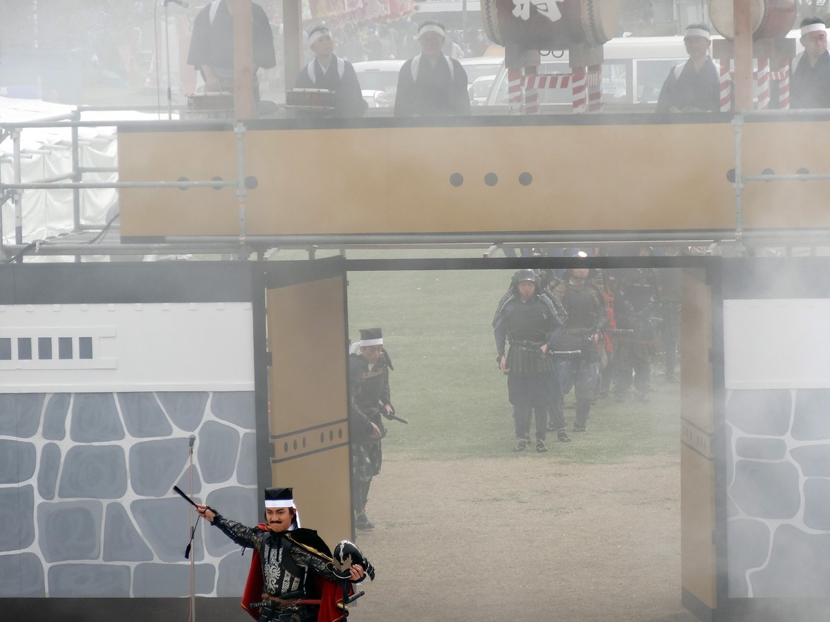 花火があがり、もくもくと煙幕が焚かれた中を開門~~♪