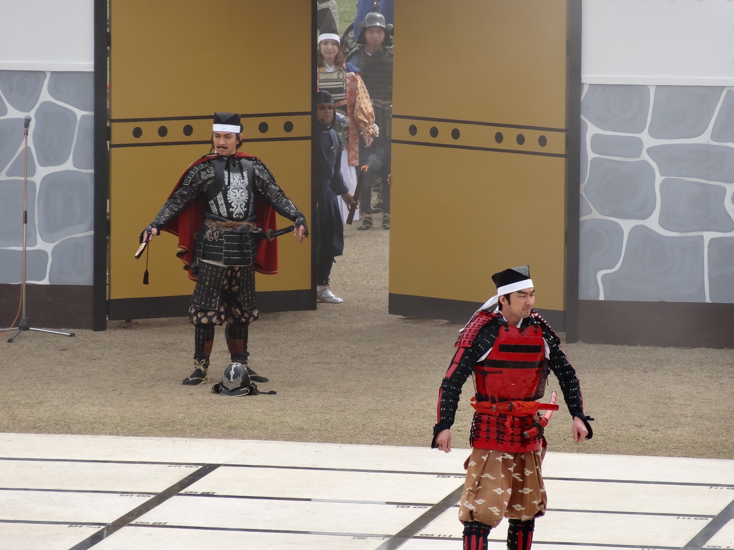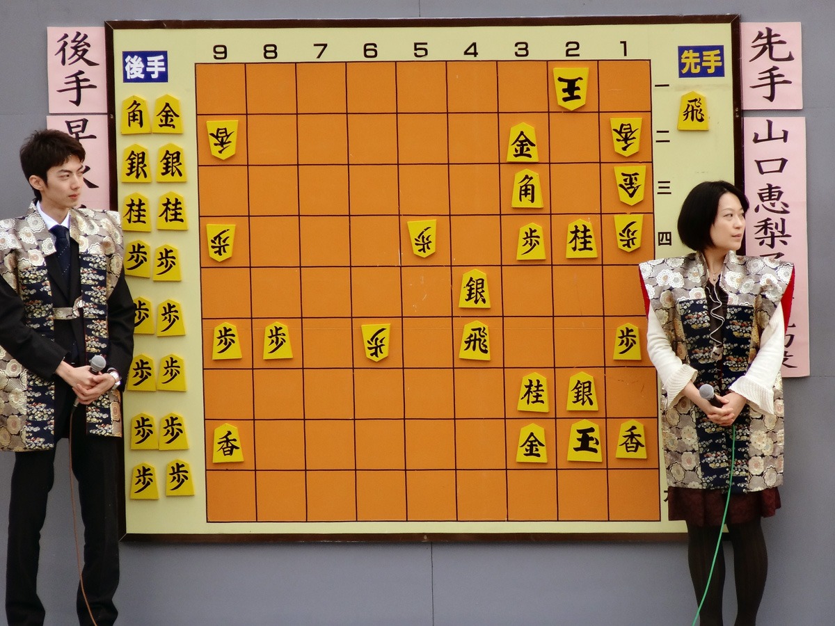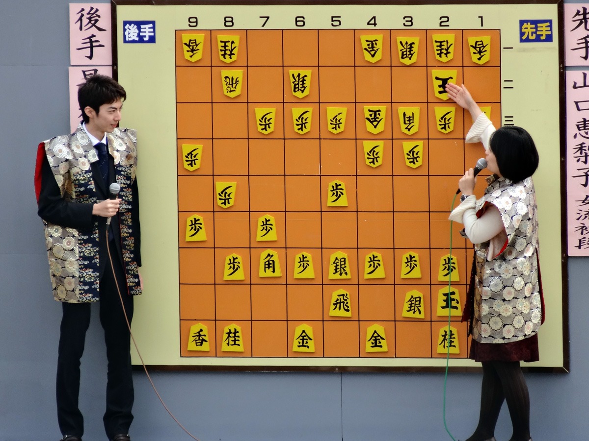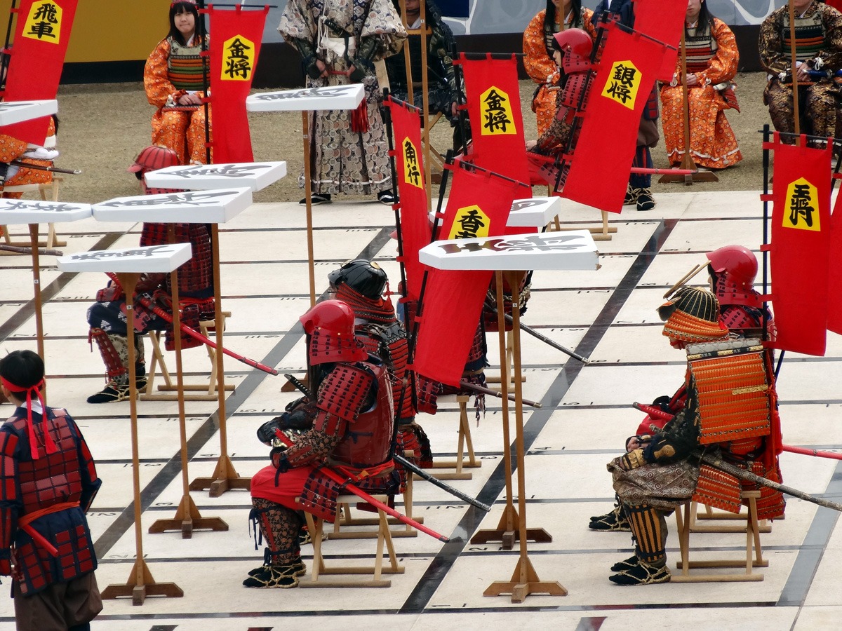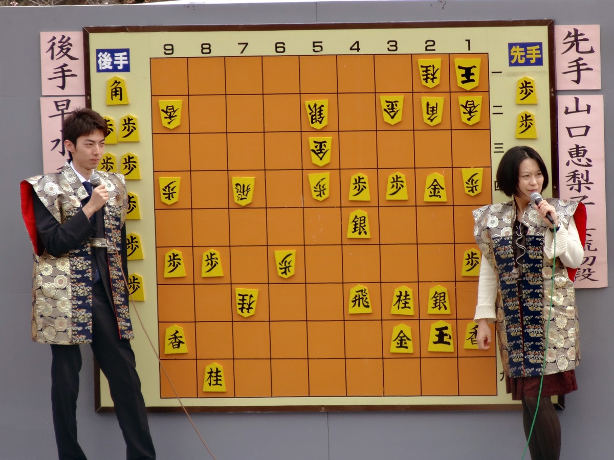 それぞれの大将一騎打ちの演技が続き、勝敗はなかなかつかず、それならば対局で勝負をつけい!というわけで、いよいよ将棋勝負に。