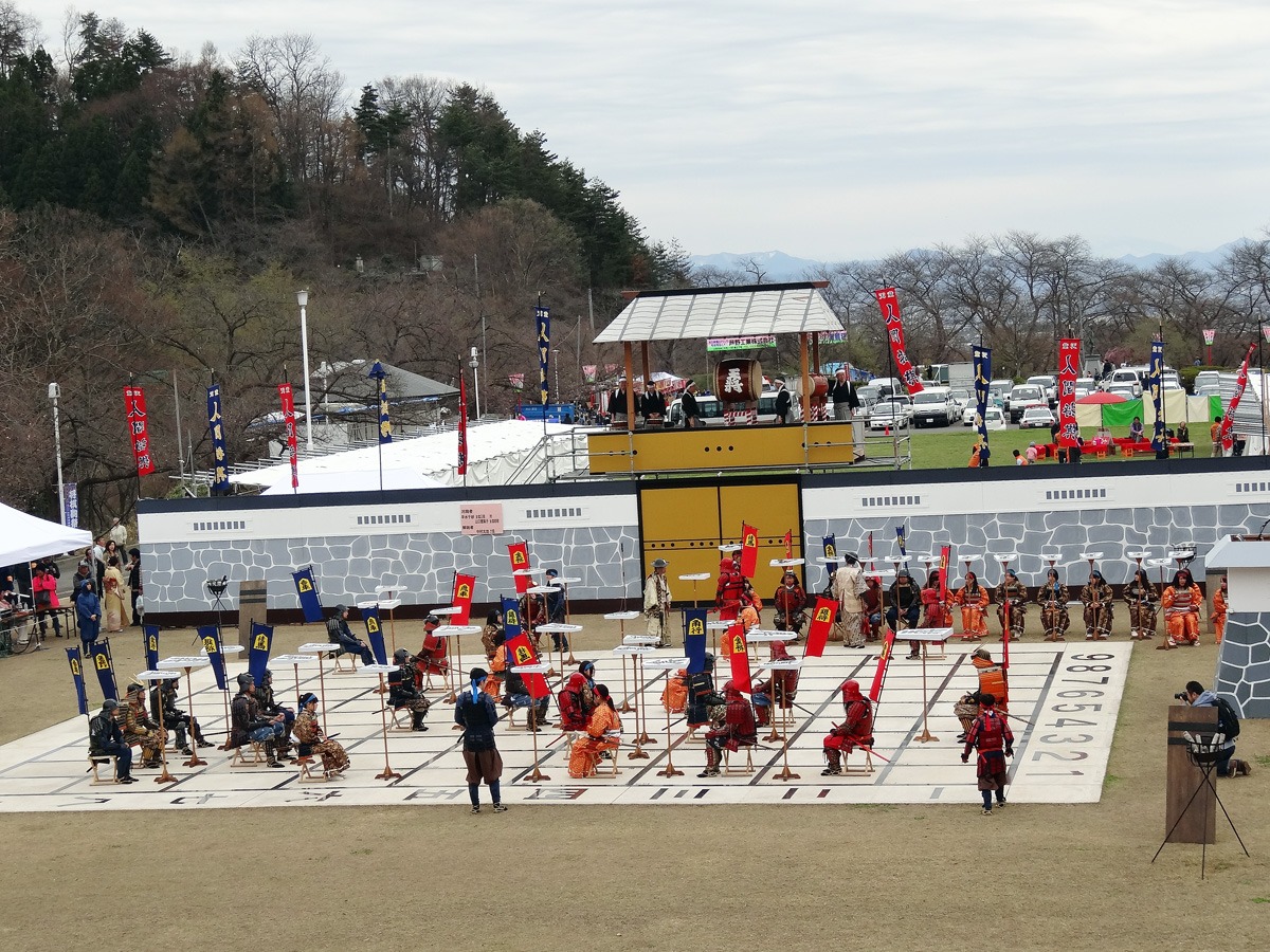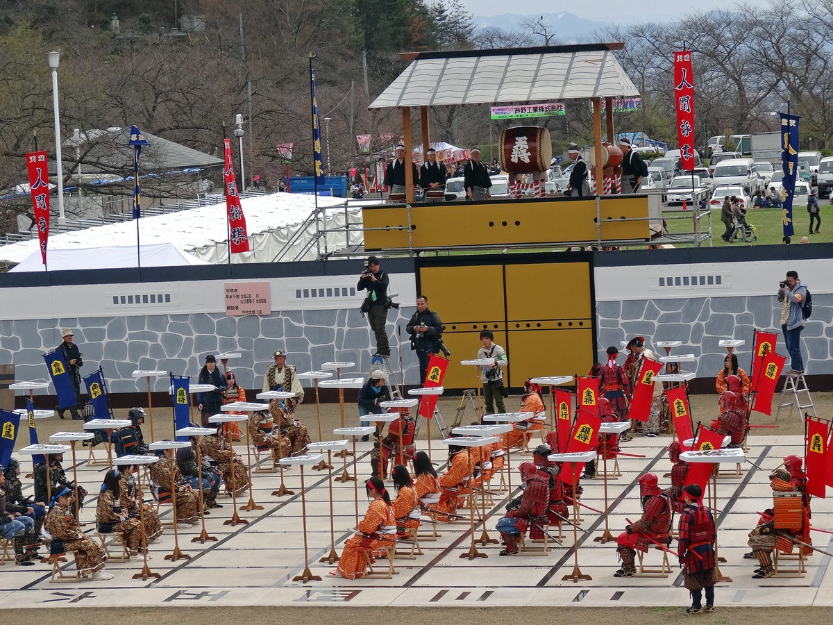 この人間将棋は、甲冑や着物姿に身を包んだ武者や腰元たちが駒となってプロの棋士が対局する、将棋の駒生産日本一の天童ならではのイベントです。