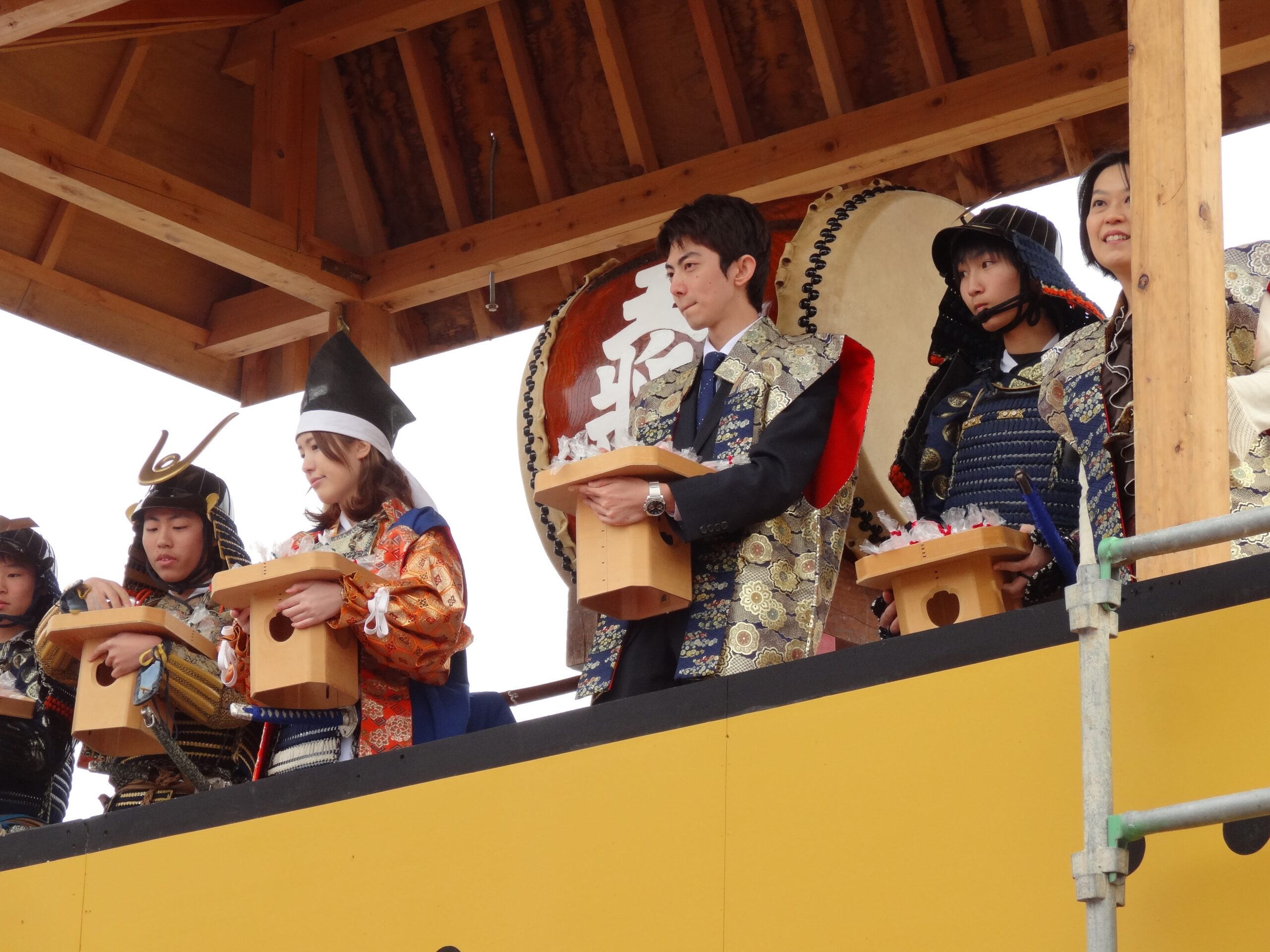 最後は王将太鼓の櫓から餅まきをして終了。おばちゃんおじちゃんのパワーに押されっぱなしで結局獲得できず(^^;)