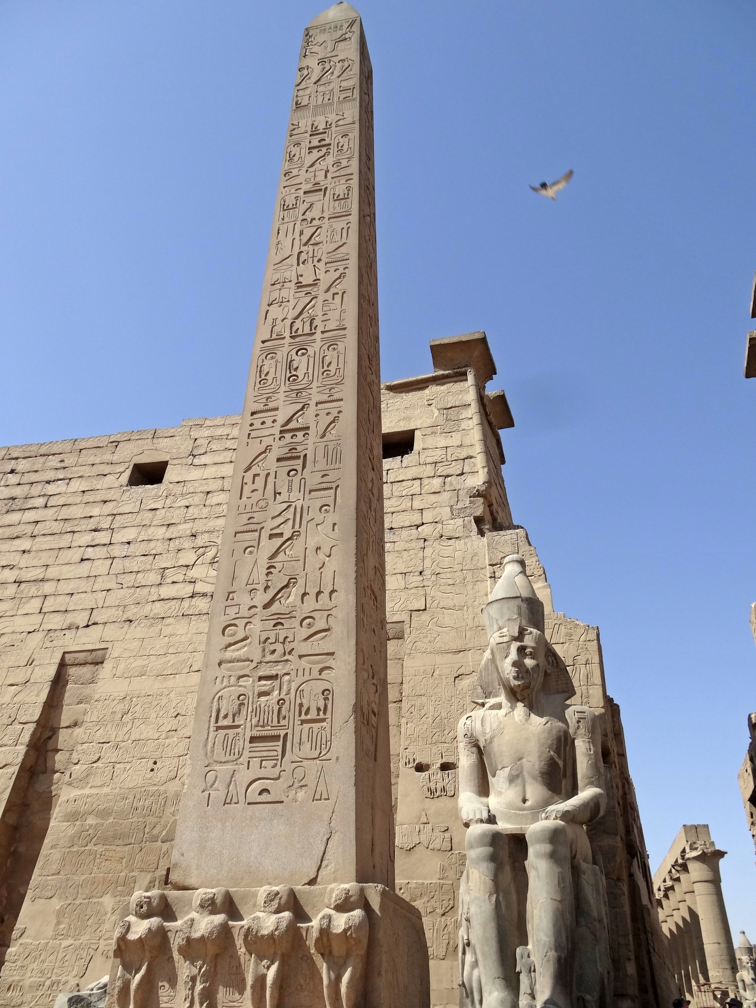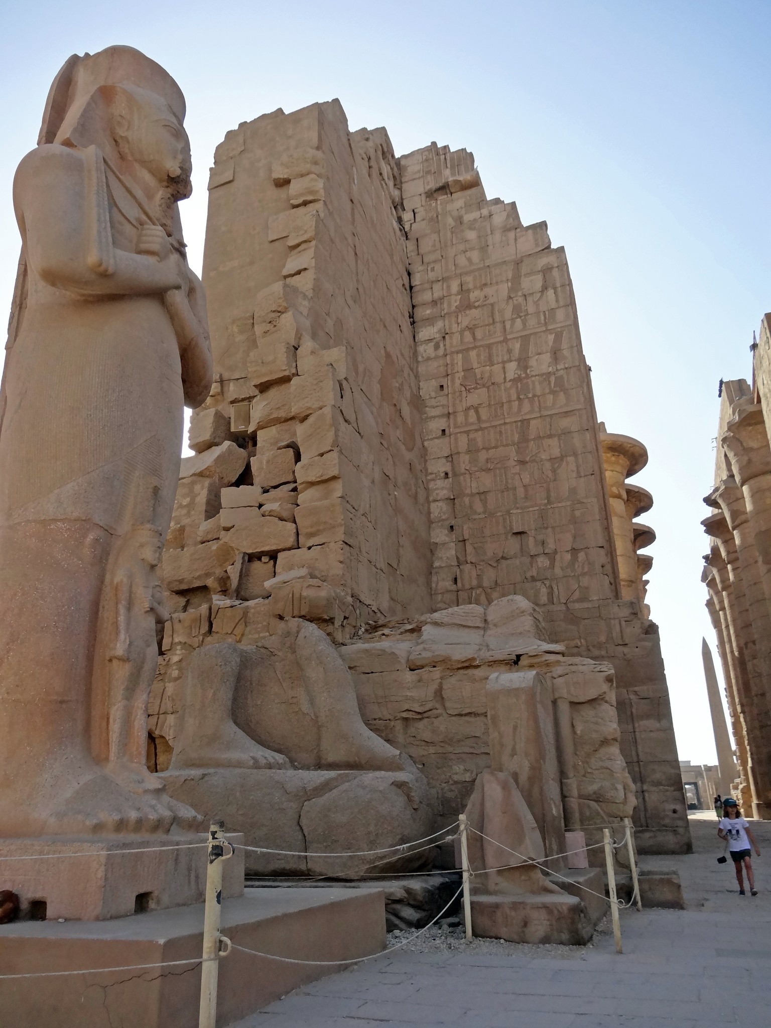 第1塔門の前両側にラムセス2世の坐像。もう片方は顔がほとんど崩れていた。そしてオベリスク。