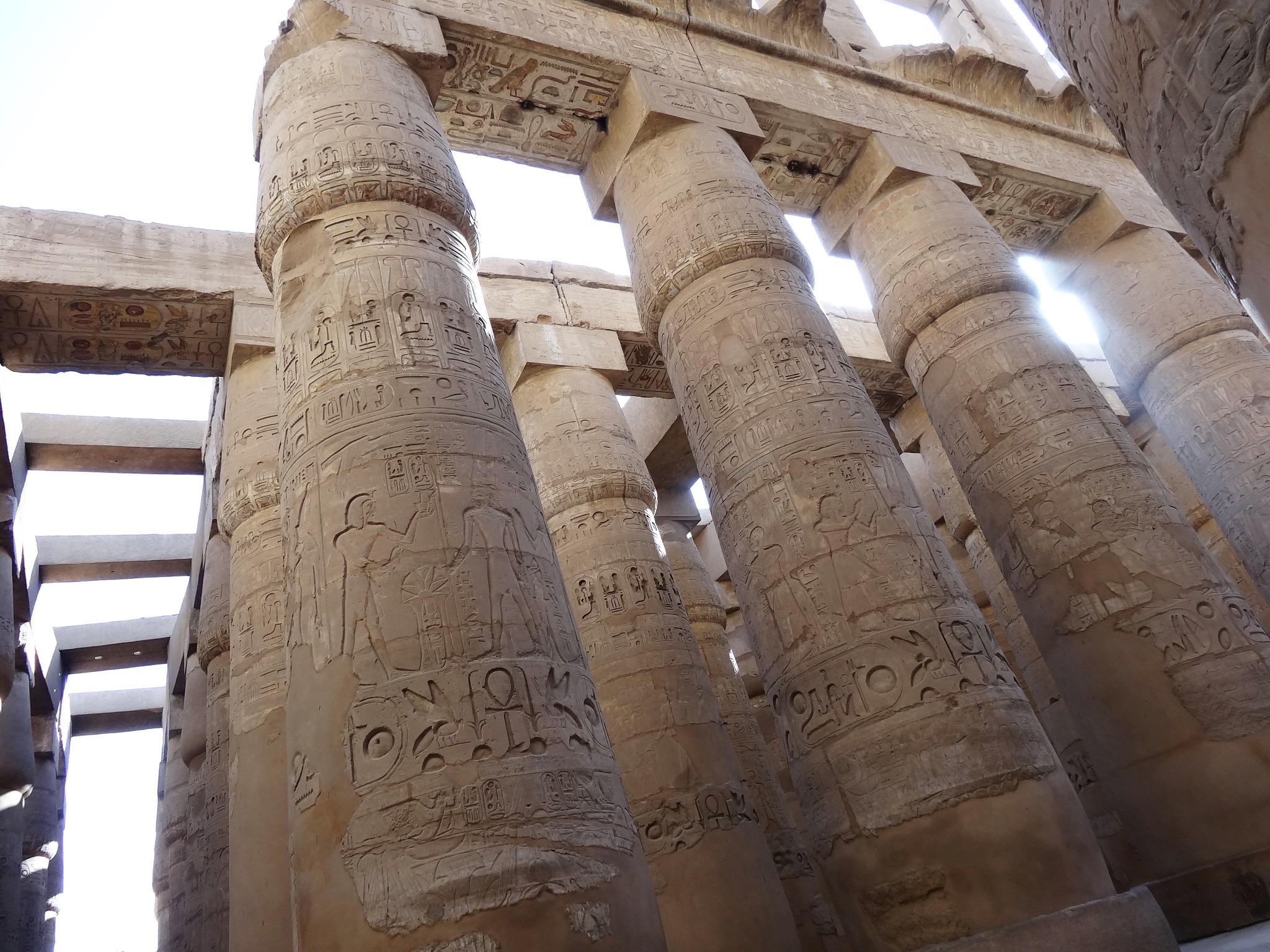 そして大列柱室へと。ファラオの権力を見せつけられるような立派な高く太い柱が空に向かってそびえ立つ。ここ好き♡