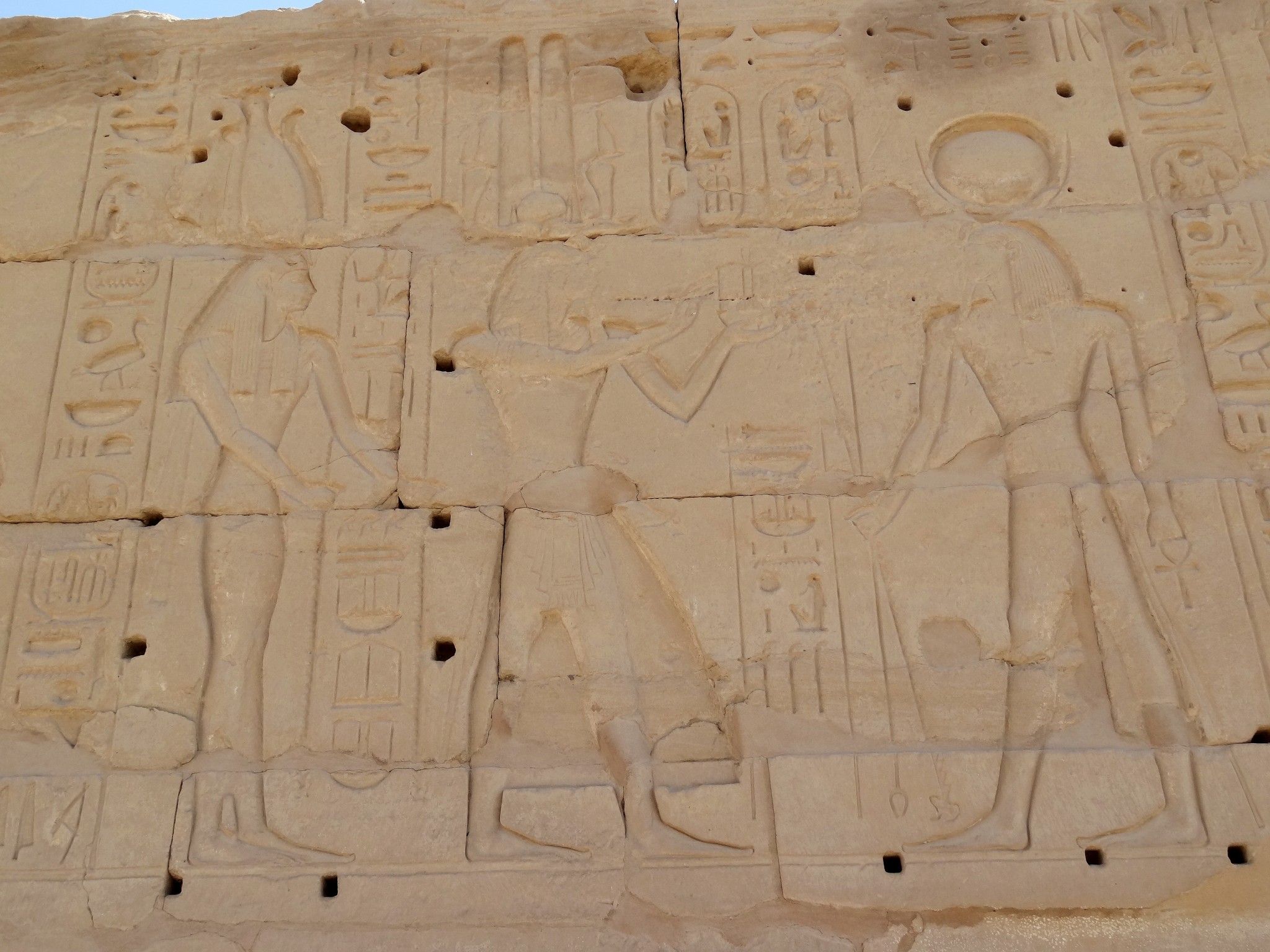 ナイル川が氾濫するちょい前にカルナック神殿からアメン神の神輿を載せて船が出発し、その参道からルクソール神殿に入り妻のムト神と過ごすという名目で、1ヶ月ほどどんちゃんやりながら過ごす「オペトの祭り」というのは最大の祭りだったらしい。