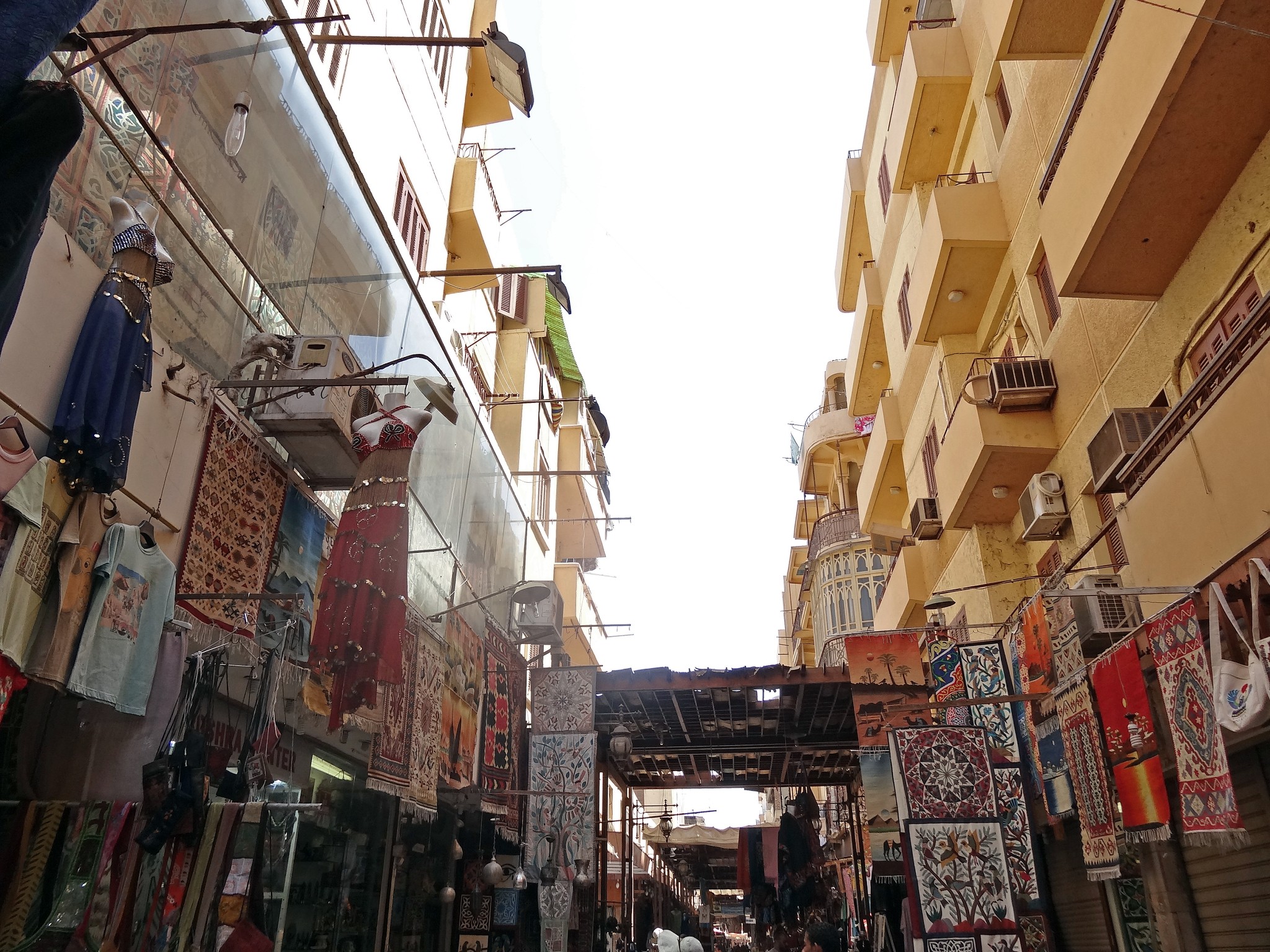 ルクソール神殿は町の中枢部に位置してます。なので周囲は結構栄えてます。すぐ脇にある「スーク(市場)」にて社会見学タイム!
