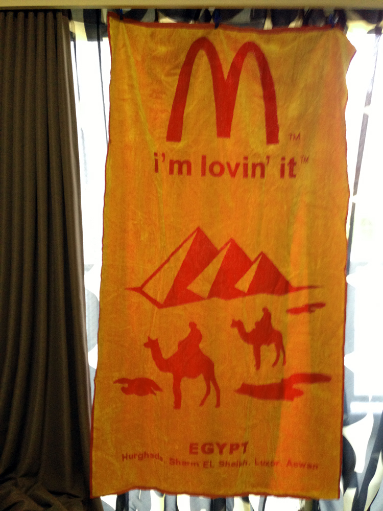 ここのバスタオルが結構厚手でふかふかの質が良くて、この店限定のおすすめ品ということで、なぜかエジプトまできてマックでおみやげを買うww。タオルケットになりそうな大きさです。。
