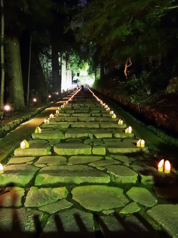 これこれ。参道も竹灯籠が並び、日中の木漏れ日とは違って幽玄な雰囲気になるんだよねえ。