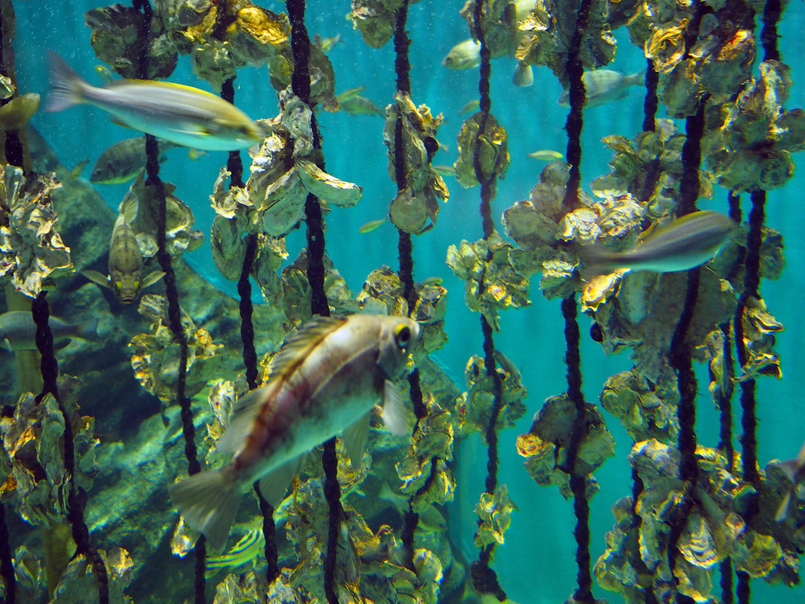 「内湾 恵みのうみ」では、牡蠣の養殖風景が再現されてました。