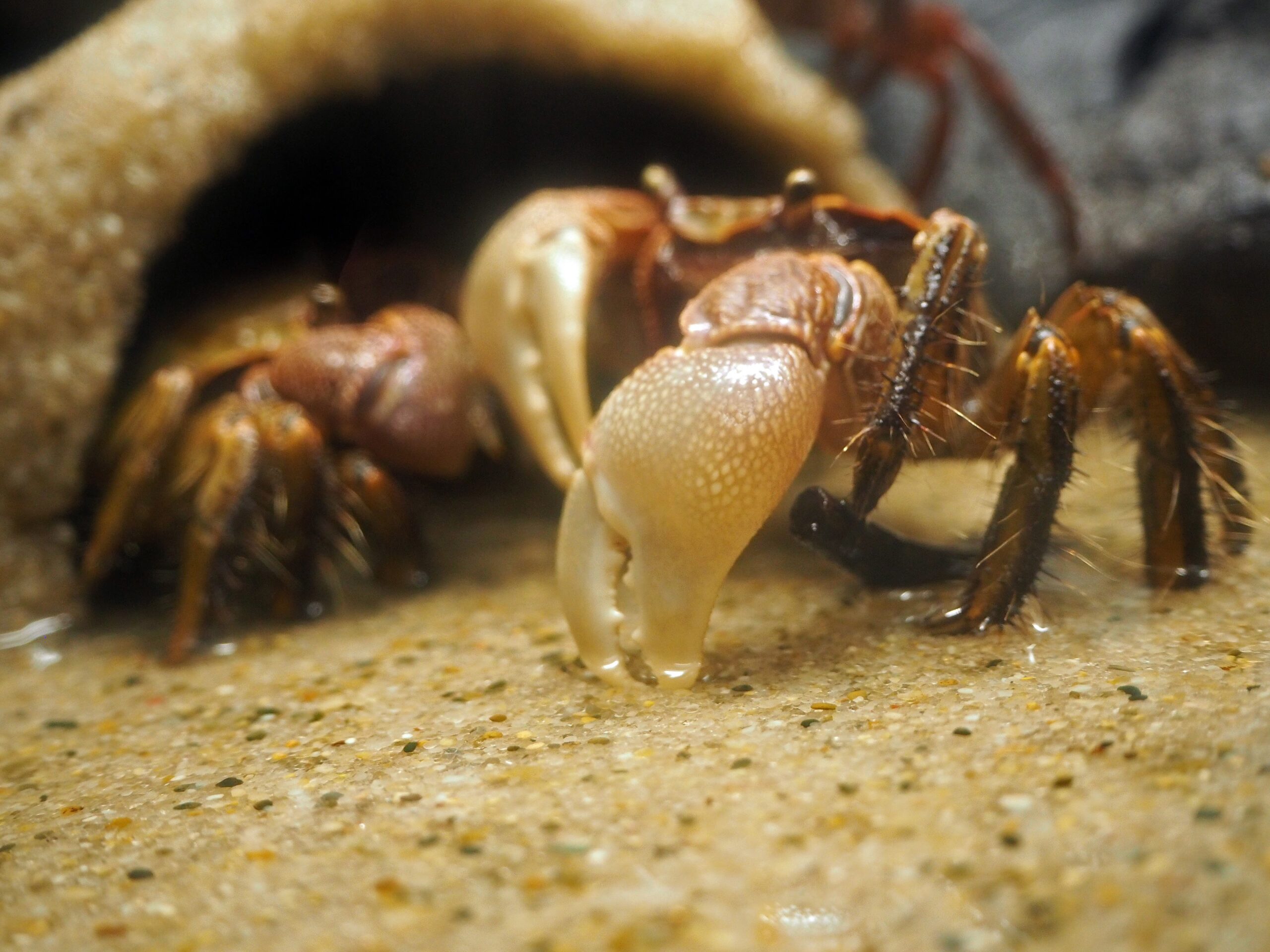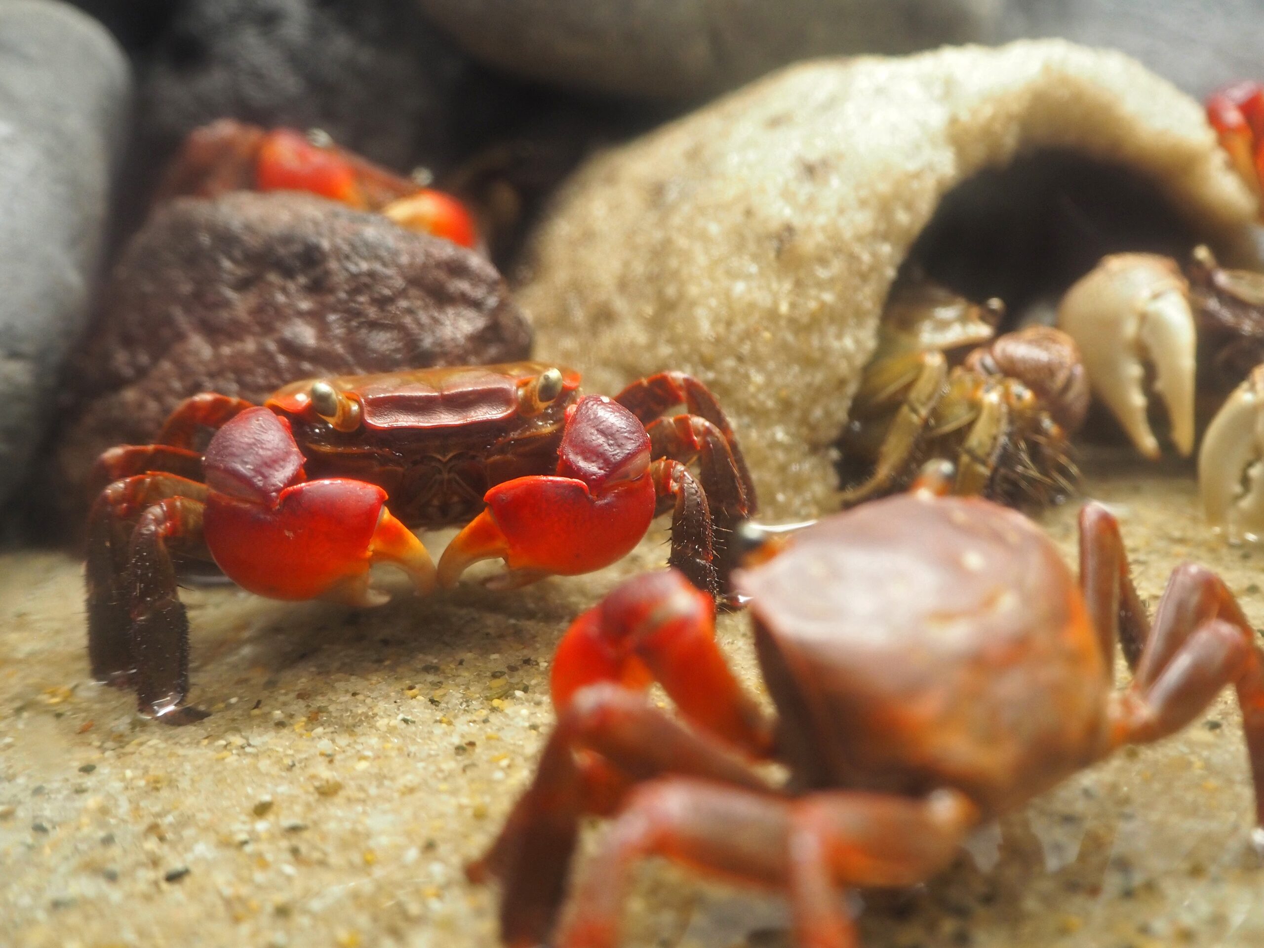その奥の「干潟 育むうみ」ではタッチプールみたいに上から覗き込める浅瀬が。横にいたカニたちがじーっくりと見たらきれいだった。