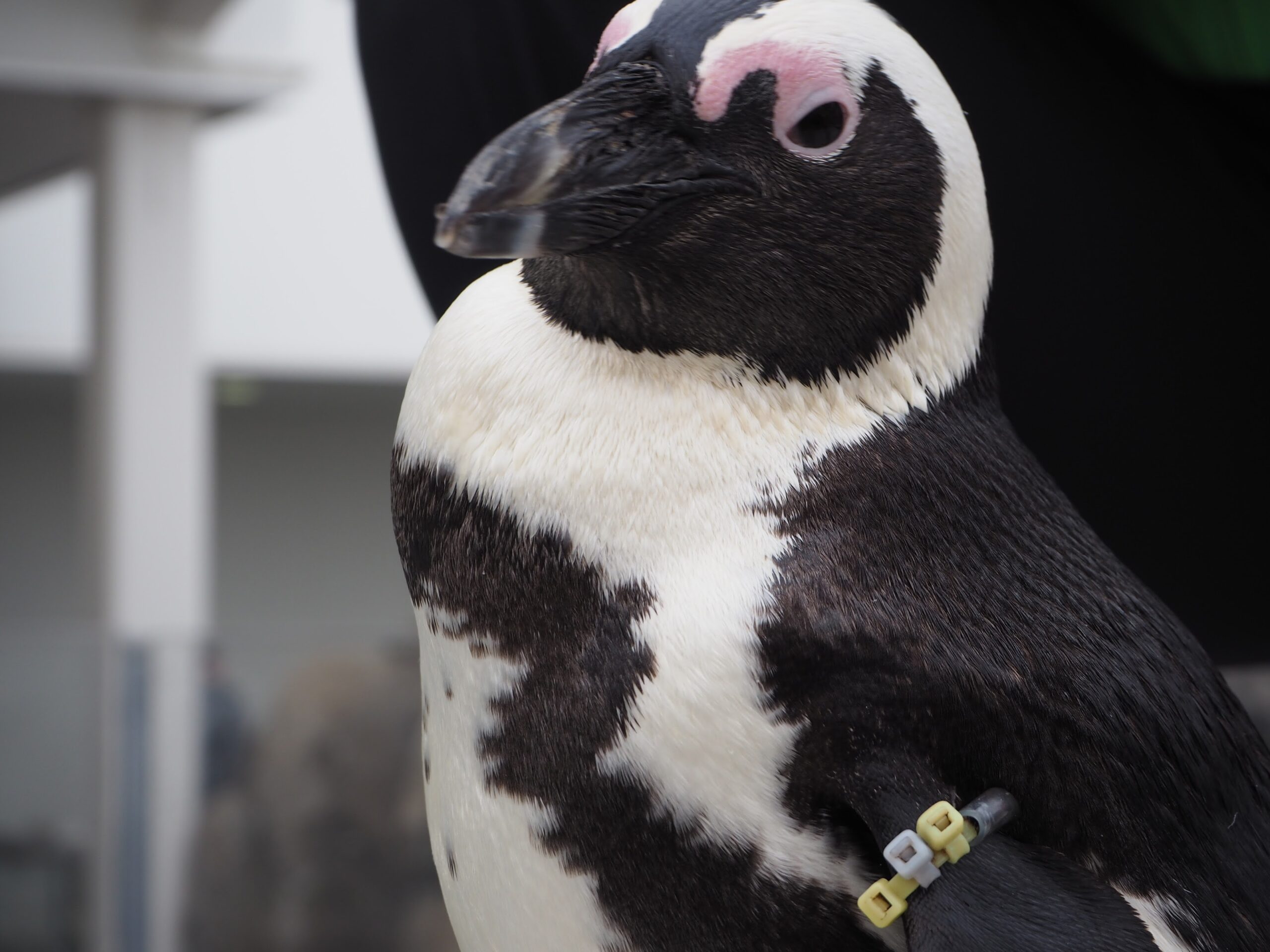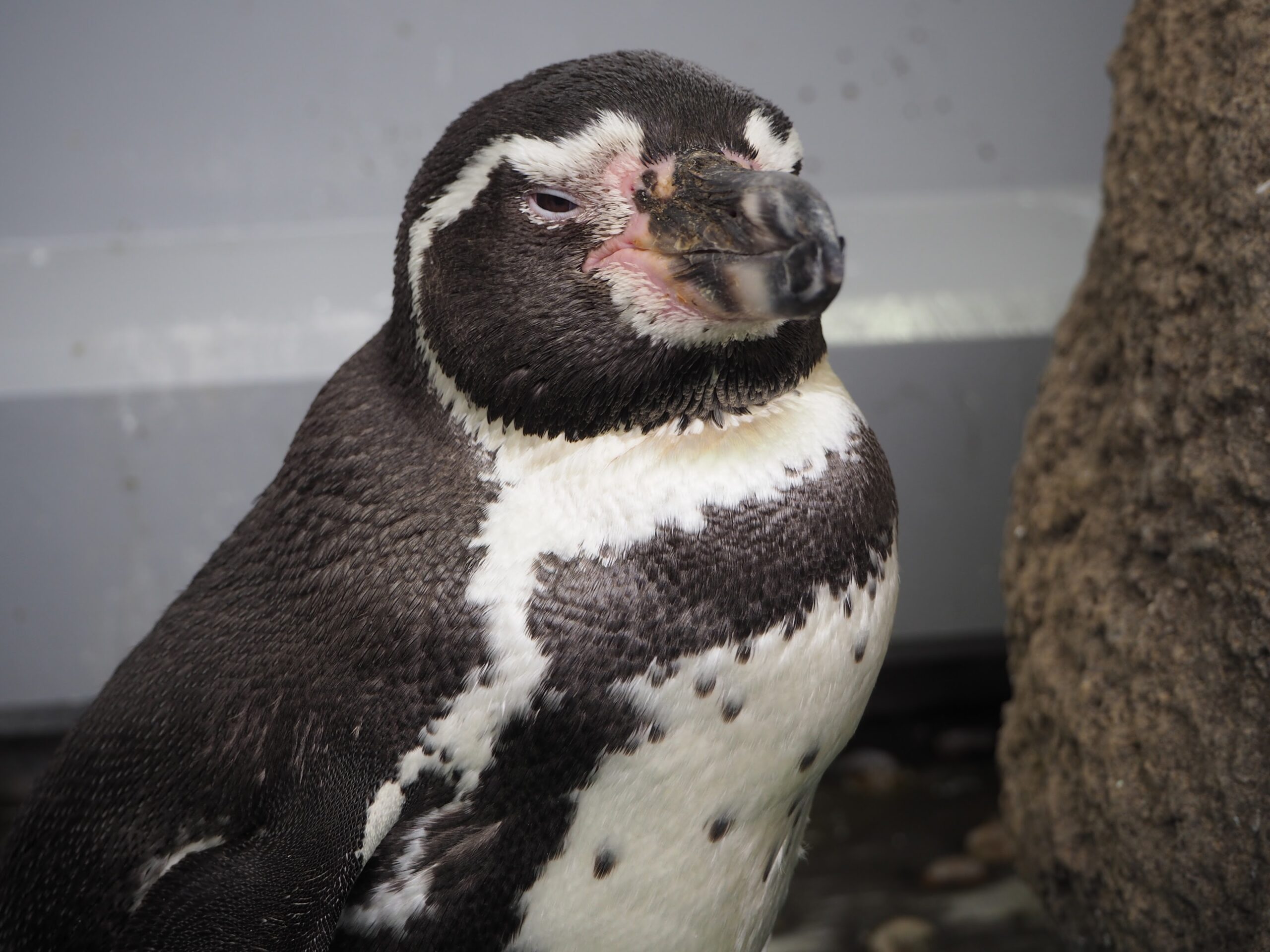 同じく胸が一本線だけど太めで、ピンクに染まるのがほぼ嘴付け根付近のフンボルトペンギン。
