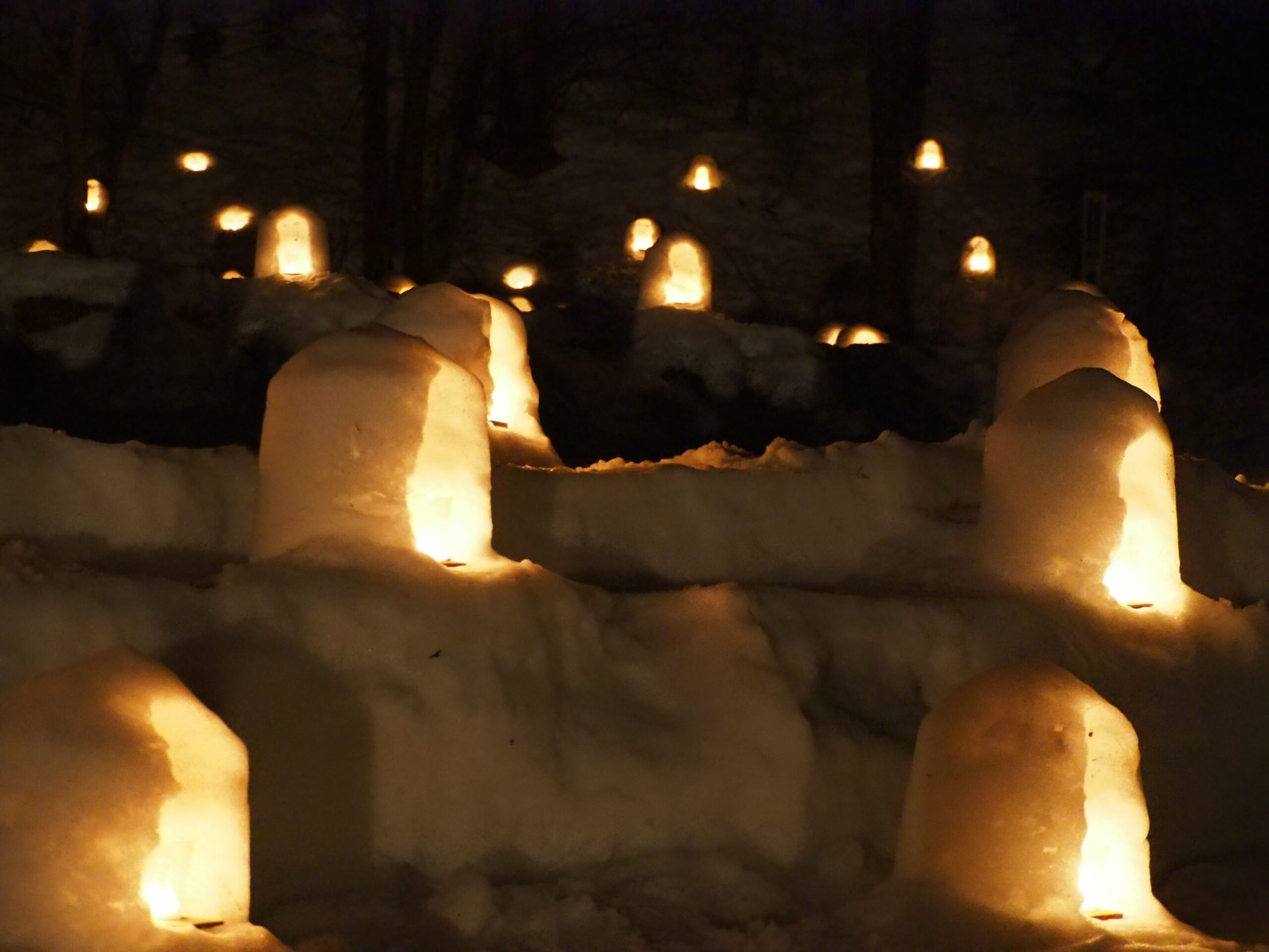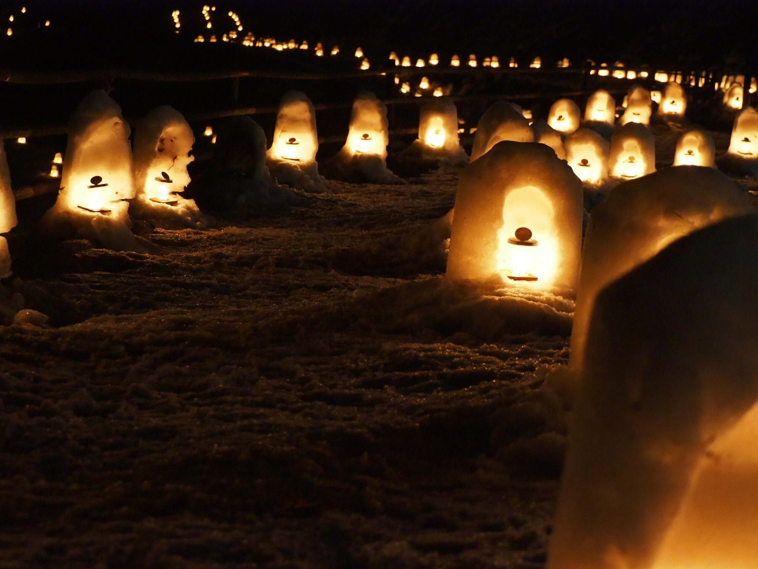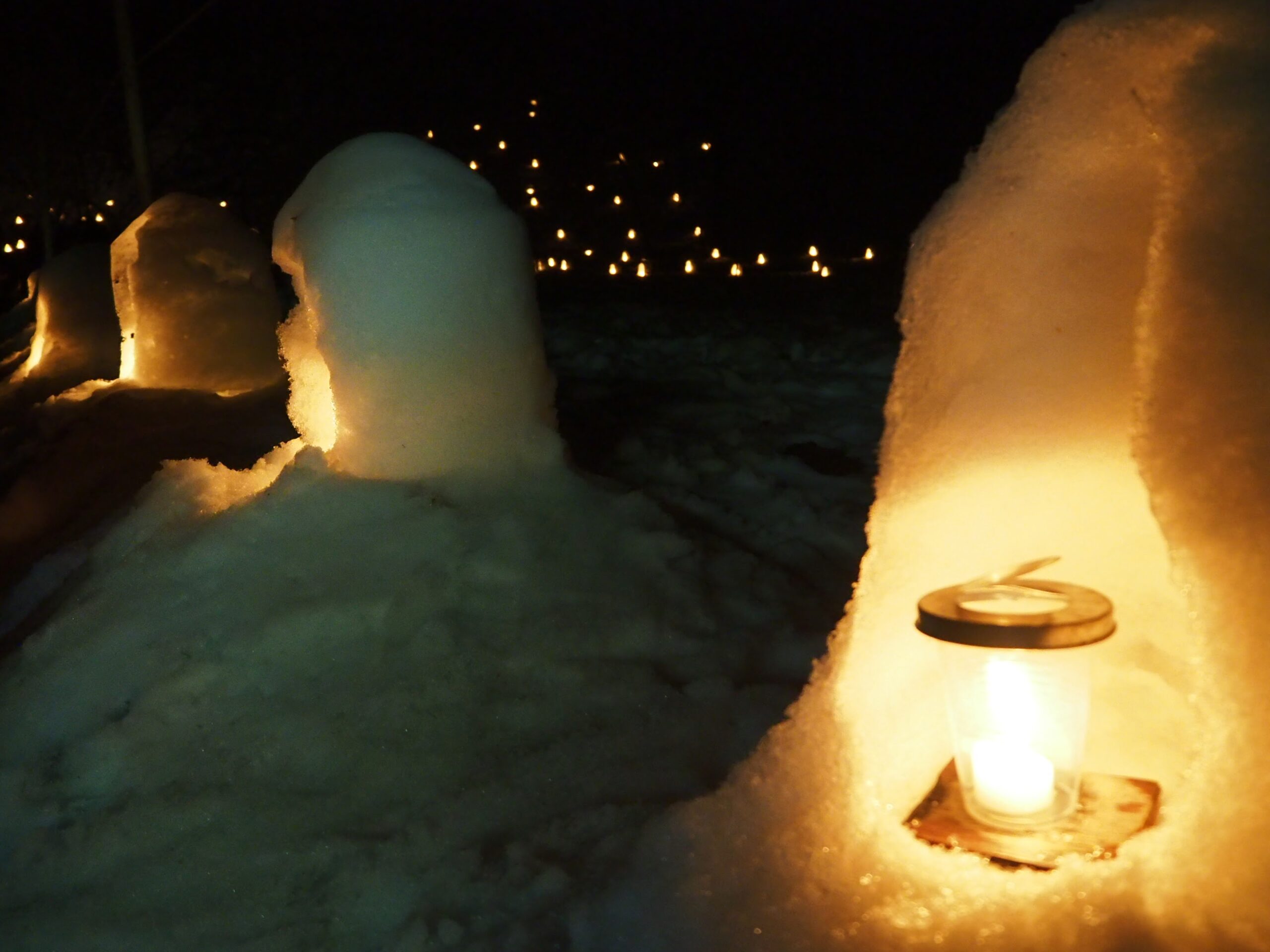 これだけの数のかまくら作るのも、夕方に全部点灯して回るのも、時間後に全部消灯確認してまわるのも、気の遠くなるような手間がかかっているに違いない。