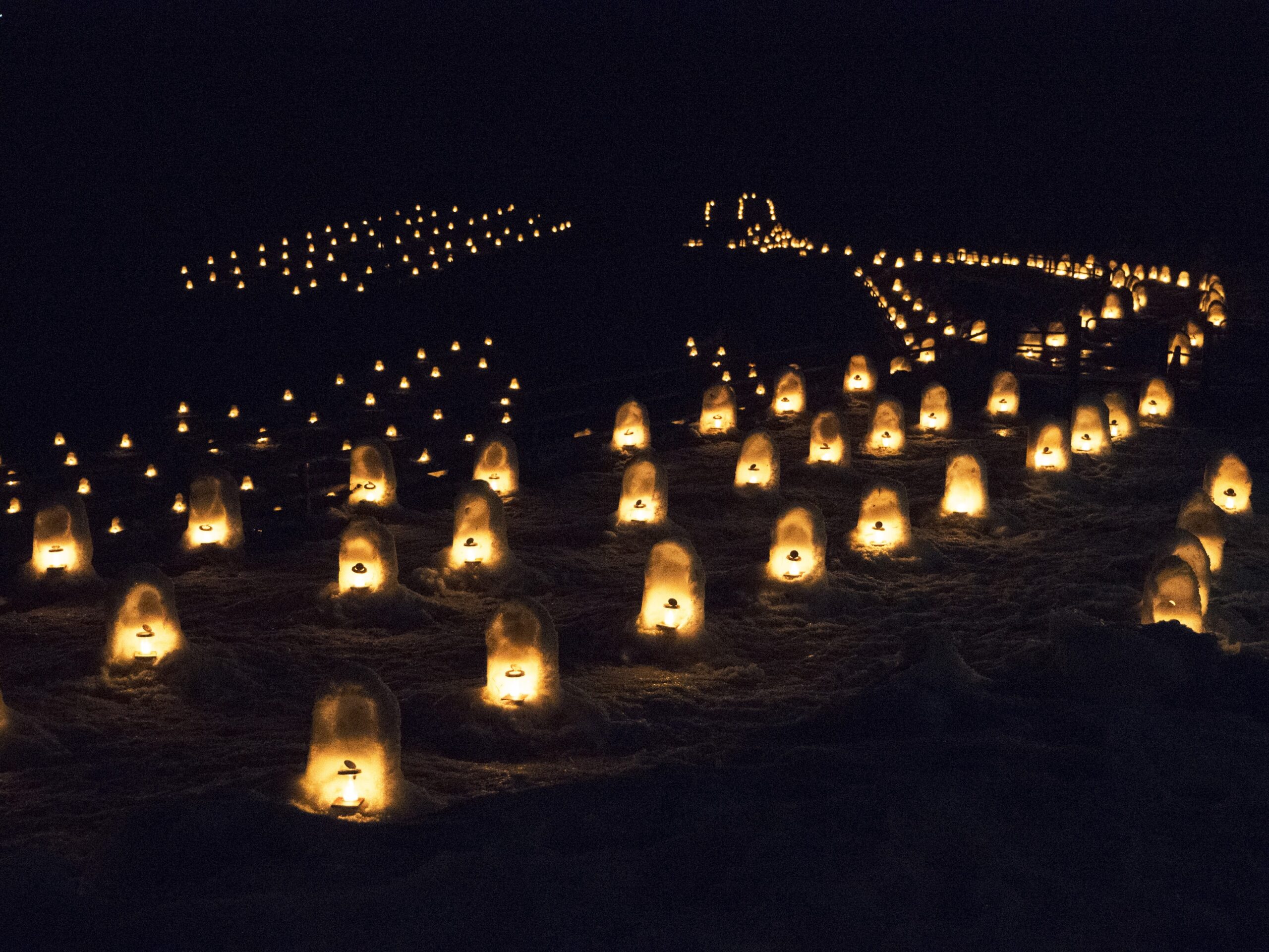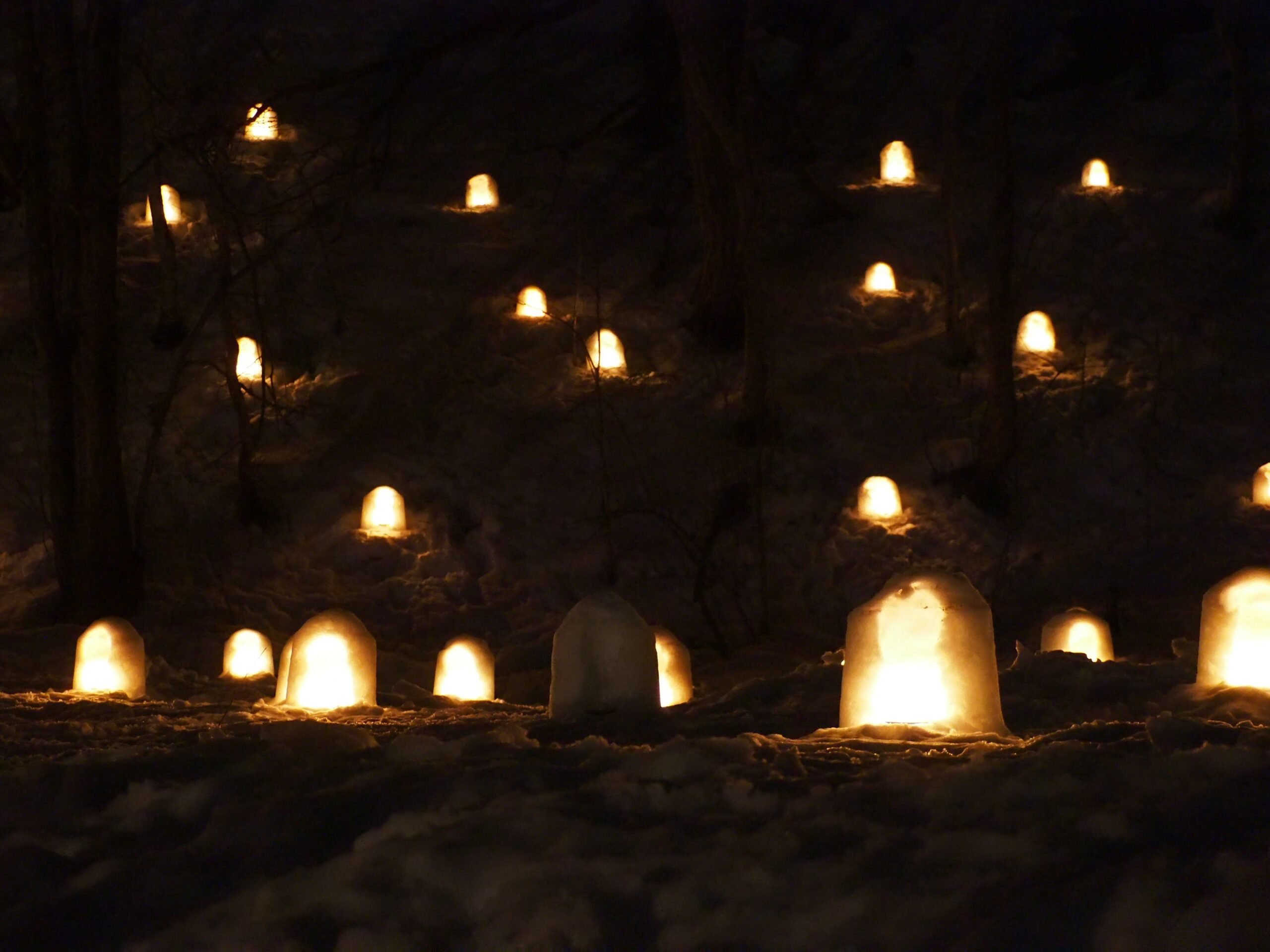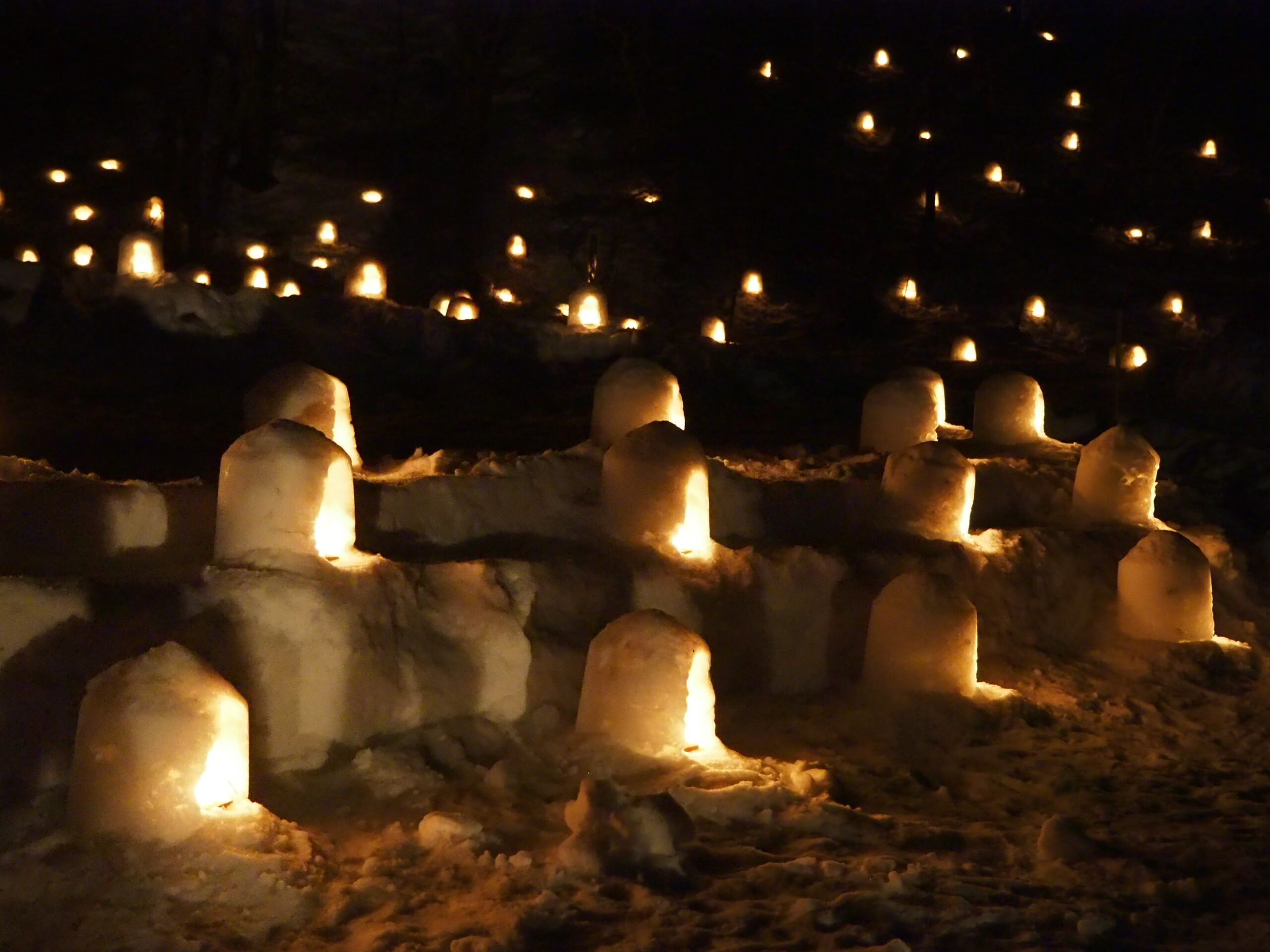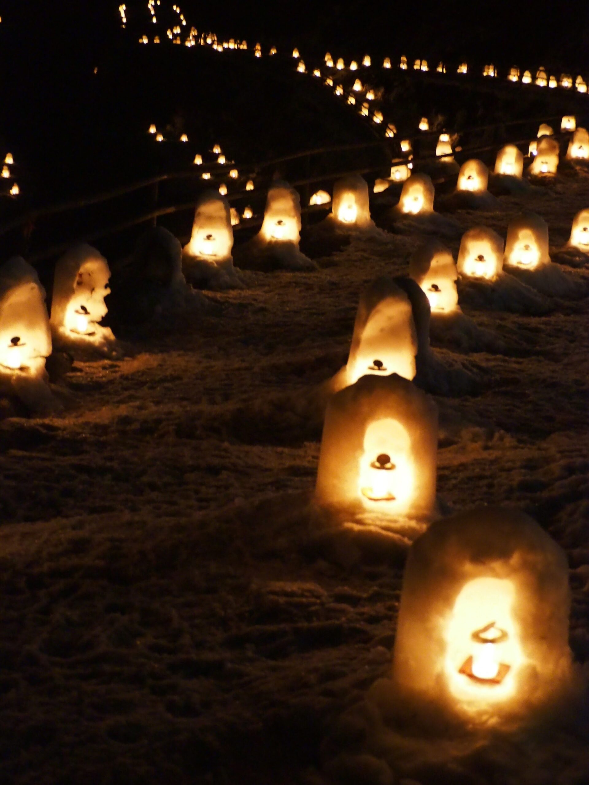 これだけの数のかまくら作るのも、夕方に全部点灯して回るのも、時間後に全部消灯確認してまわるのも、気の遠くなるような手間がかかっているに違いない。