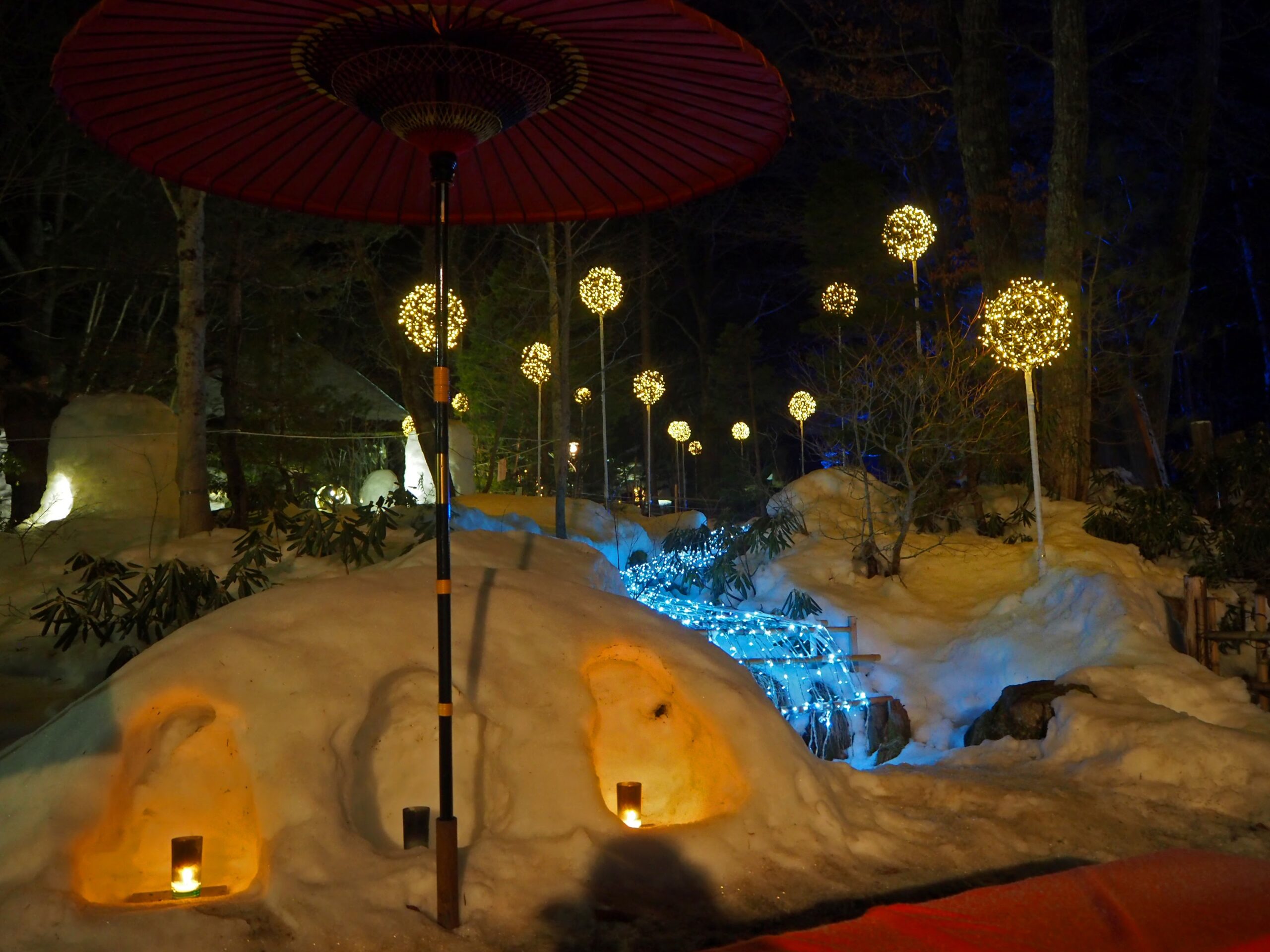 光の川が流れ、黄色いぽんぽんの明かりが可愛らしい。