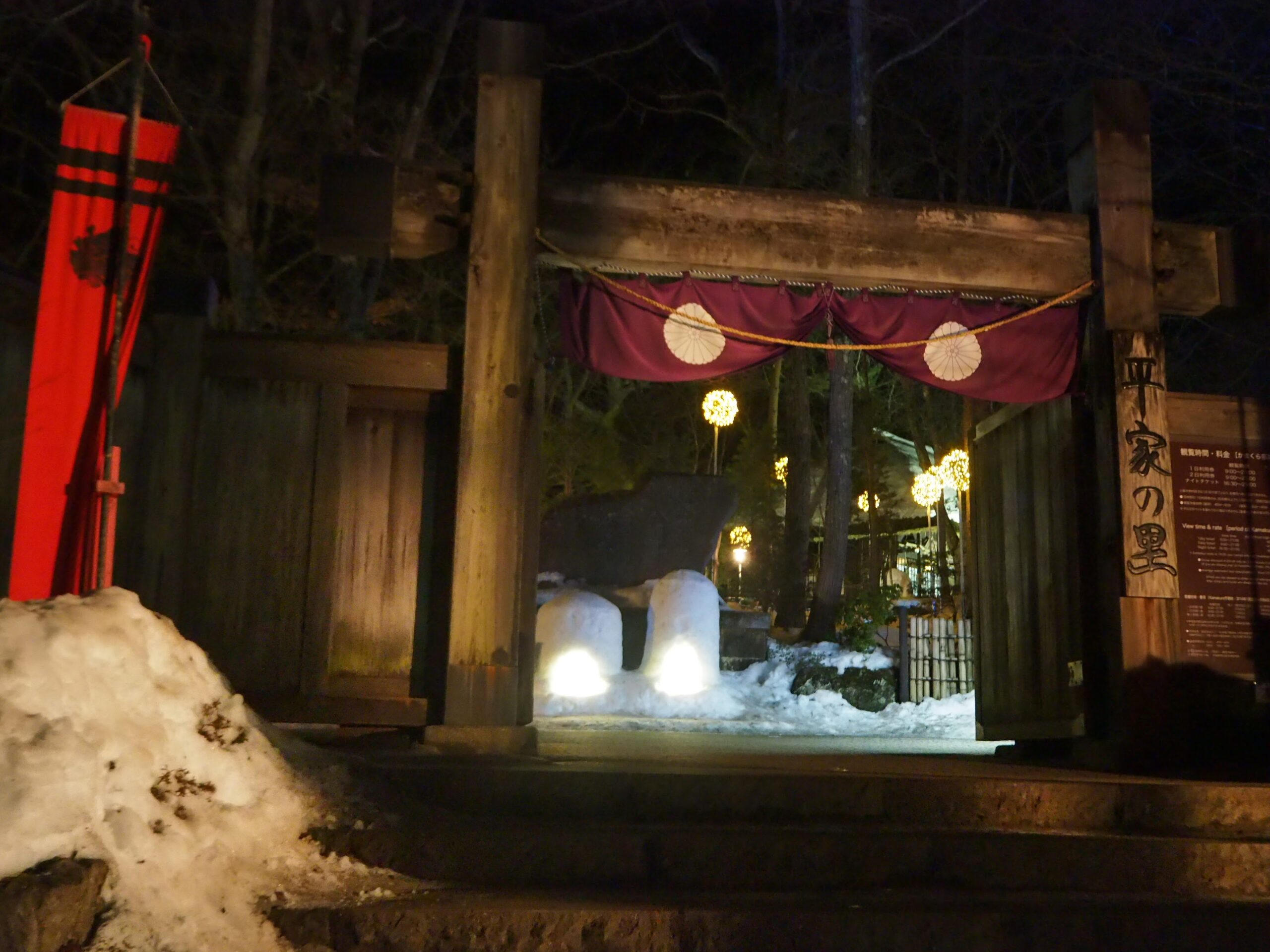 「平家の里」自体が古民家園や資料館みたいな観光施設なので入場料が必要なんだけど、1日券、夜間券、2日券とあるので、1日券で昼間と夜と両方観れる。