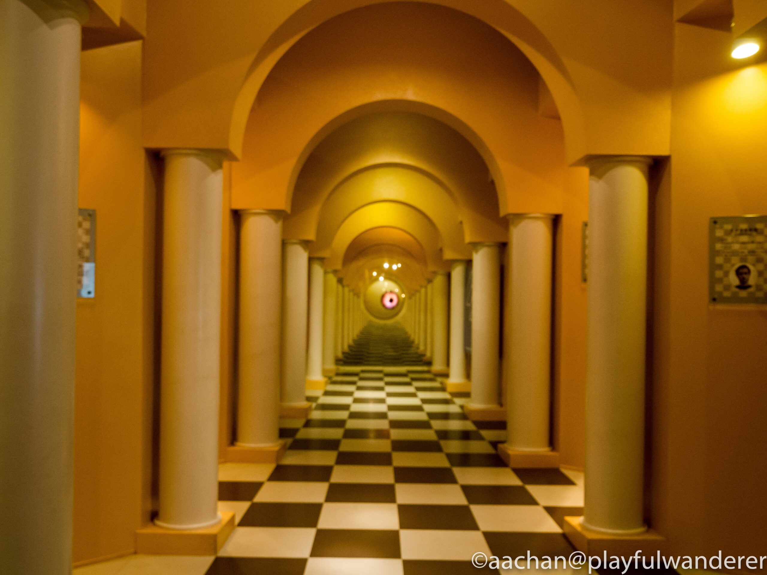 地下の科学館入り口の前の部屋にて。