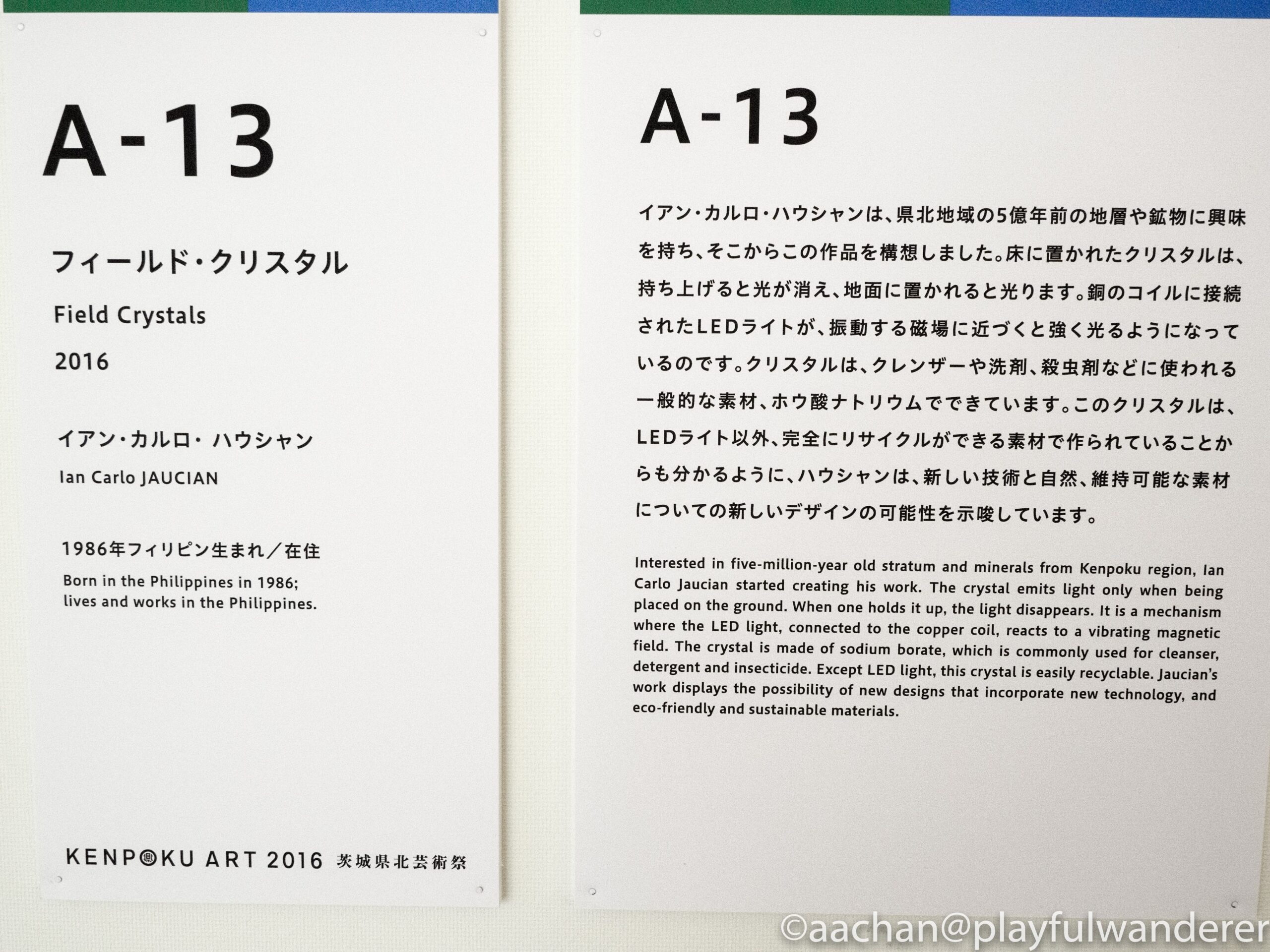 この芸術祭ではやたらと「インスタレーション」という言葉が使われていて、なんぞや?と思ってしまうのだが、「場所や空間全体を作品として体験させる芸術」であり、ただ見るだけじゃなく五感で感じるアートのことらしい。手法は無限大だ!