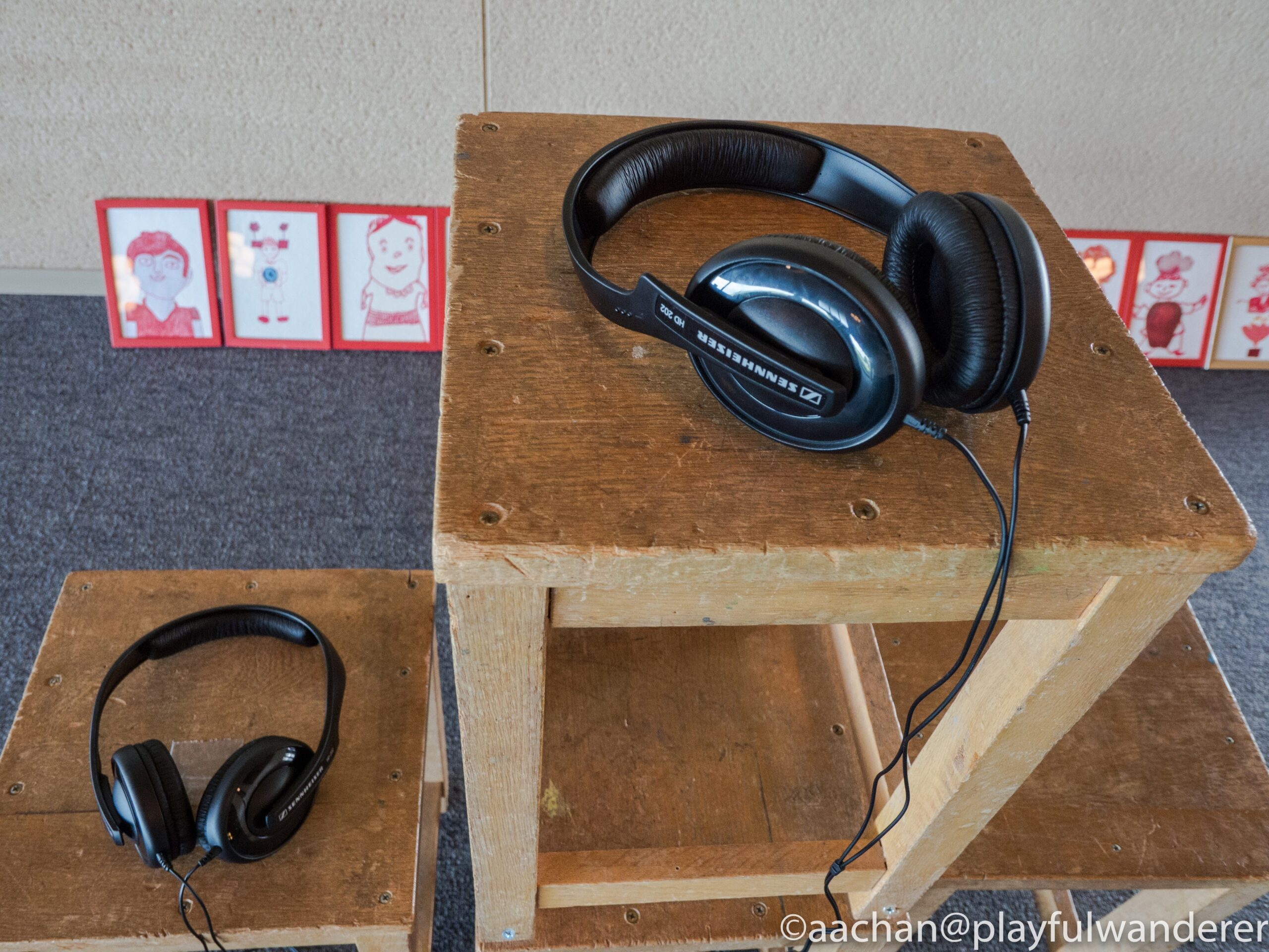 さきほど旧富士ヶ丘小学校で見たのと同じコンセプトで、ヘッドフォンが用意されてました。