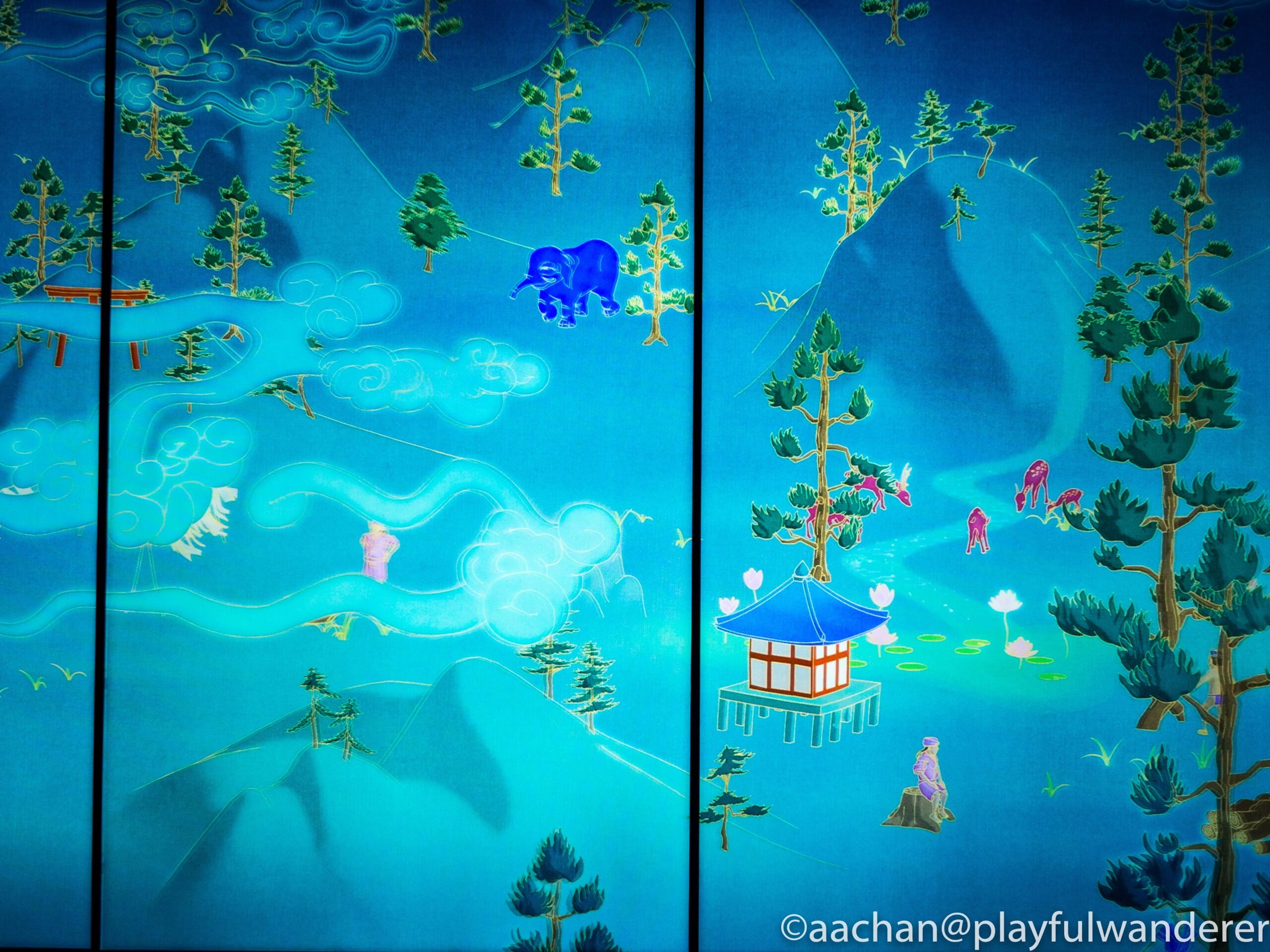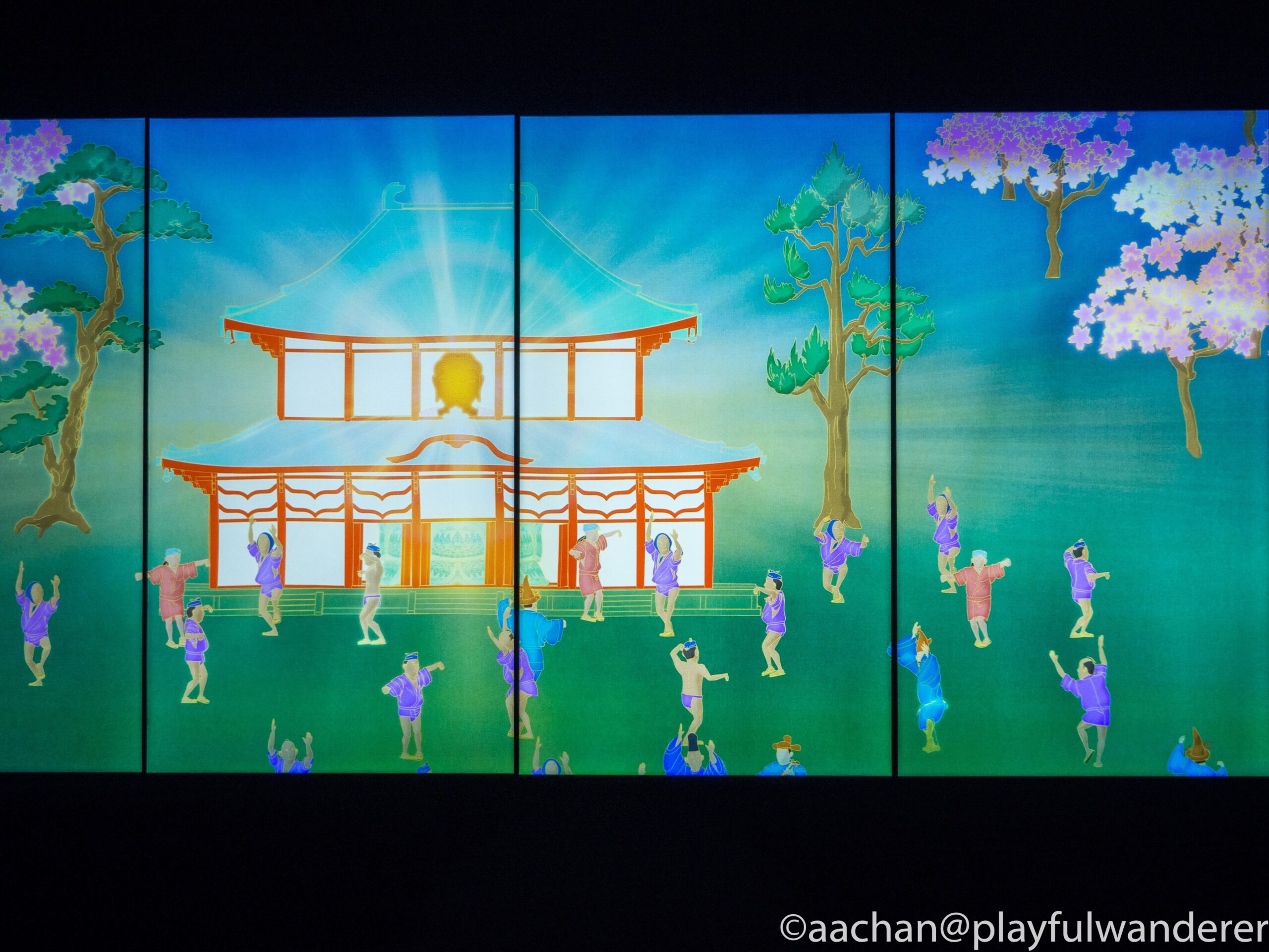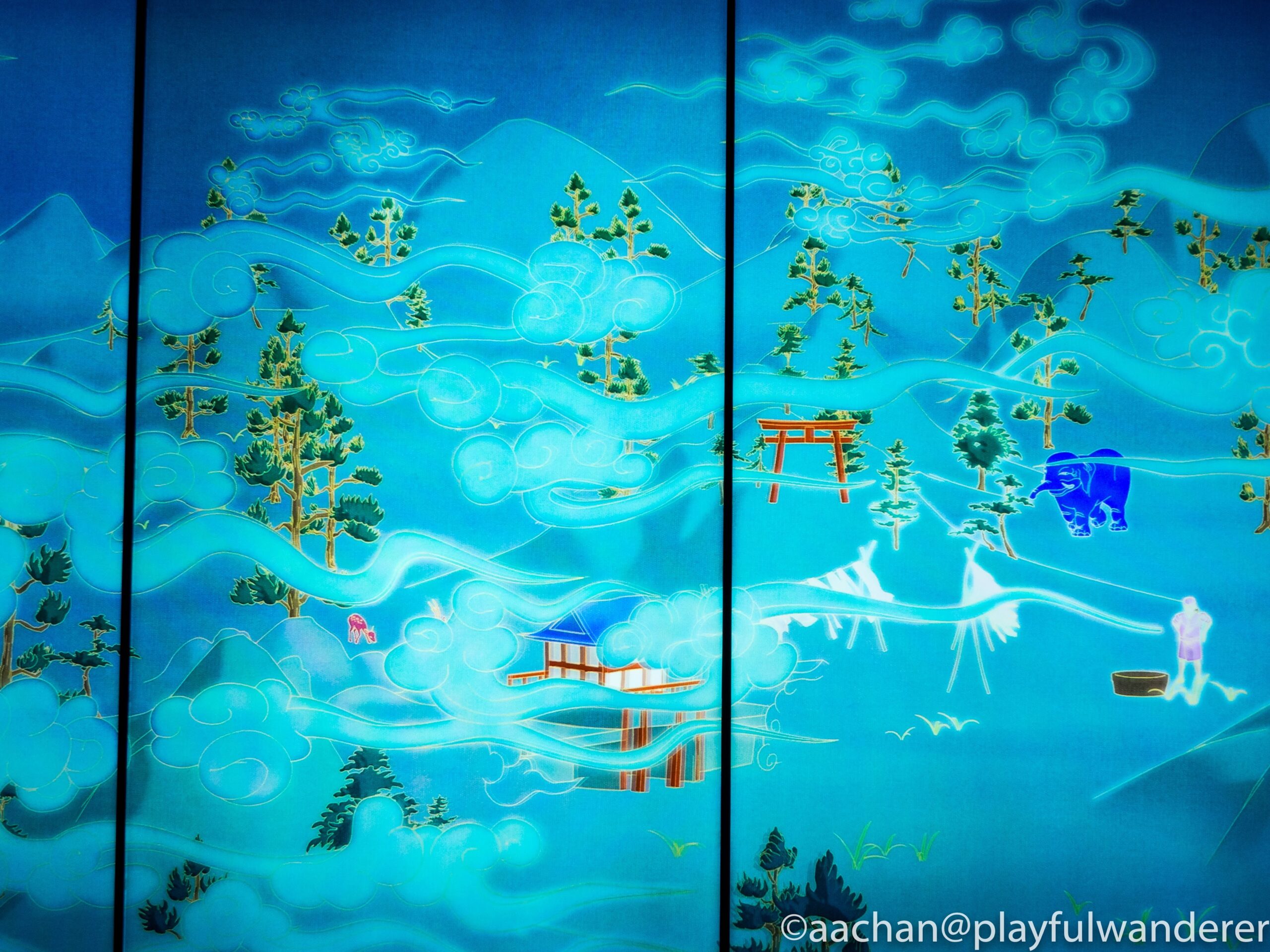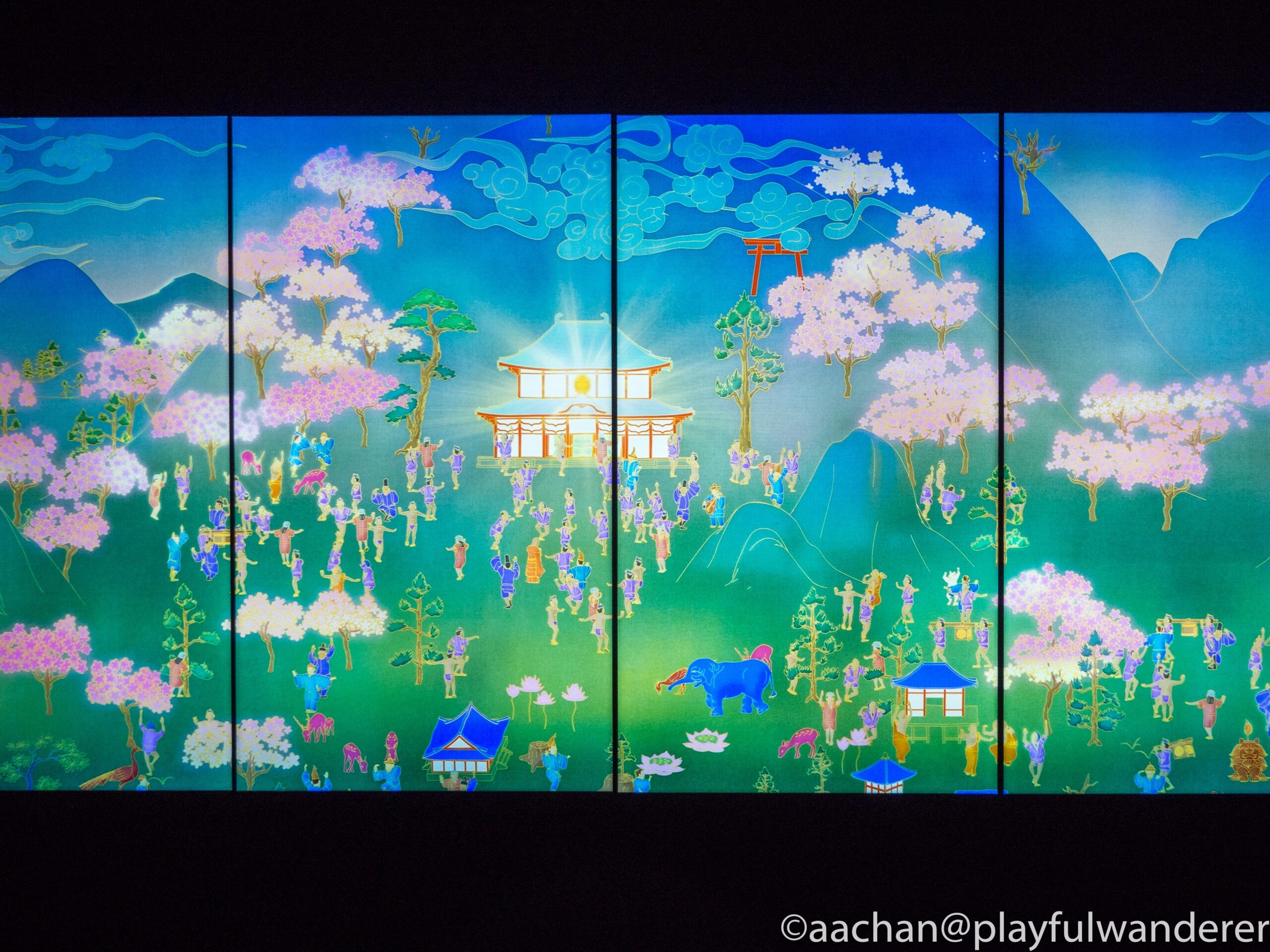 何もない土地に都が作られていく絵巻物になっていて、そのまぼろしのような美しい色彩と展開に目が離せない。これはちょっと立ち止まって写真とるだけじゃもったいない。